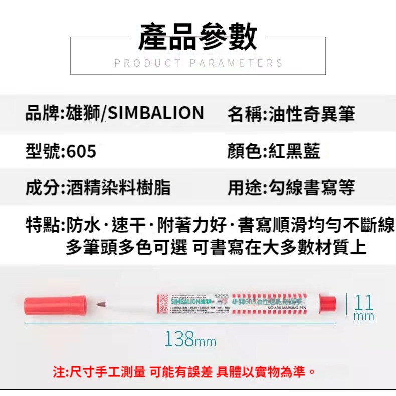雄獅油性速乾奇異筆 NO.605,紅色,一盒12支裝,是您辦公、學習、創作的理想選擇。這款油性筆採用速乾墨水,書寫流暢,不易暈染,讓您的作品保持清晰整潔。紅色筆跡鮮明醒目,適用於標記重點、繪畫等各種用途。一盒12支裝,經濟實惠,滿足您的長期使用需求。雄獅品牌值得信賴,品質保證,讓您安心使用。