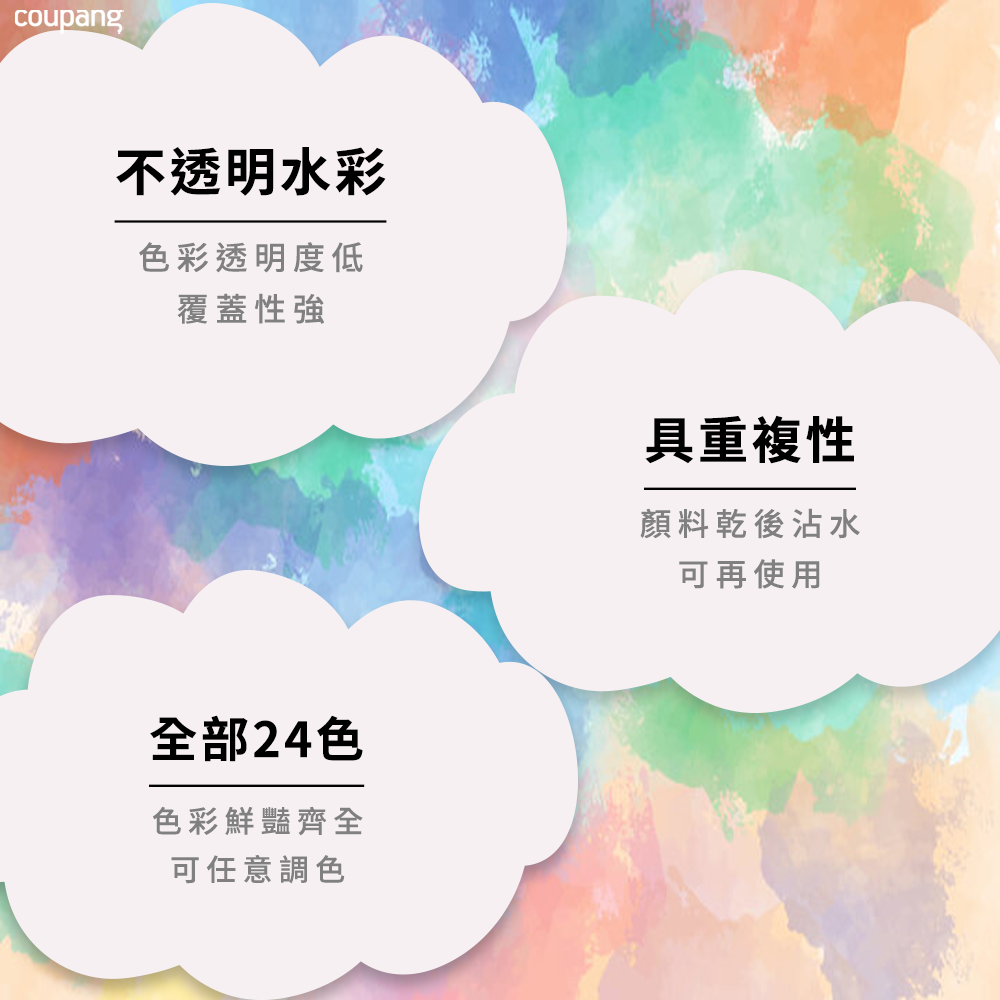 - 不透明水彩覆蓋力強,色彩不易透底,輕鬆疊色,創作更多豐富層次的藝術作品。