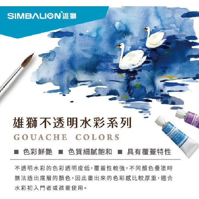 - 雄獅王樣不透明水彩,色彩飽和鮮明,讓您的畫作更加生動活潑,充滿藝術氣息。