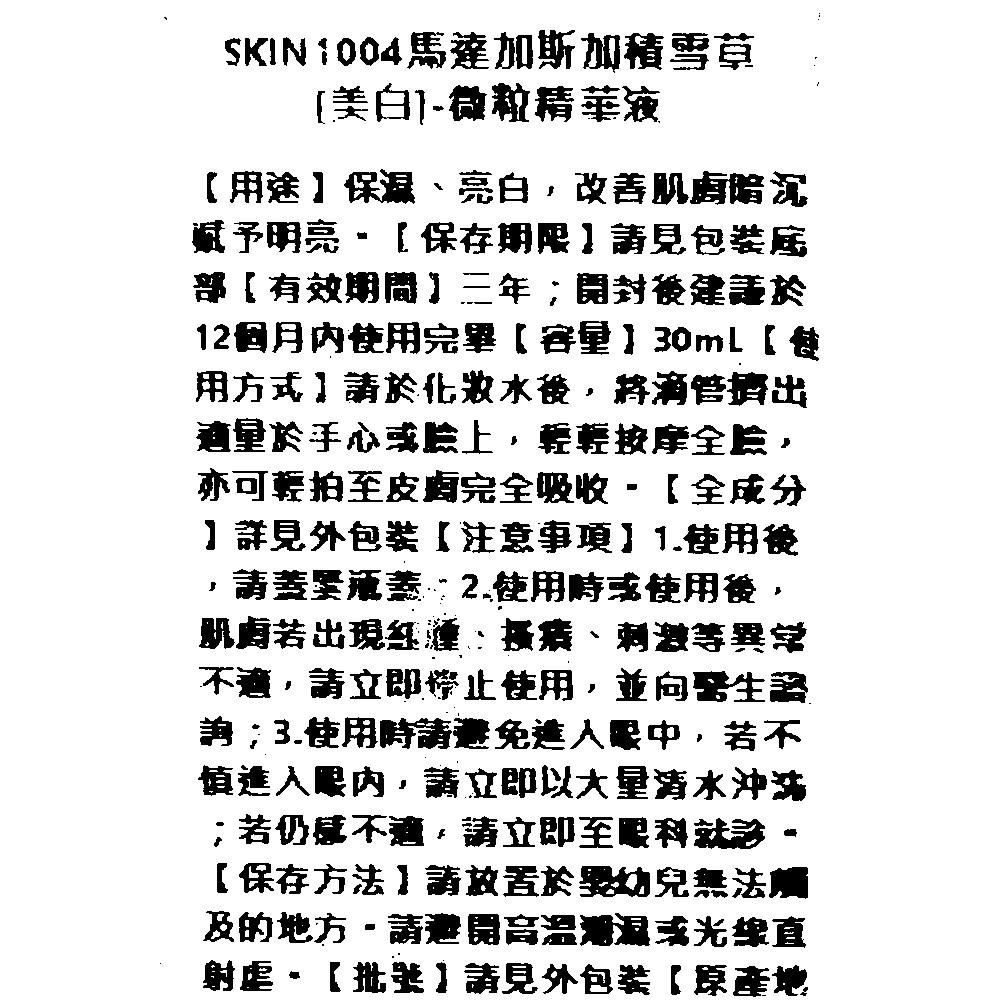 SKIN1004 馬達加斯加積雪草美白微粒精華液,蘊含來自馬達加斯加的純淨積雪草精華,能有效舒緩肌膚,改善泛紅敏感。其獨特微粒配方,能深入肌膚底層,提亮膚色,淡化暗沉,使肌膚由內而外散發健康光澤。30ml容量,輕巧方便,適合日常保養,讓您隨時擁有透亮美肌。本產品經過嚴格品質檢測,不含刺激成分,溫和安全,敏感肌也能安心使用。每天使用,感受肌膚煥發新生的美麗奇蹟。