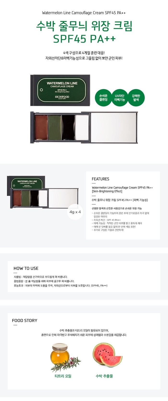 - 발색이 선명하고 우수하며 산뜻한 사용감으로 손쉬운 위장 가능