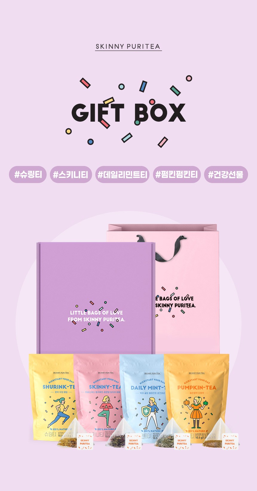 - SKINNY PURITEA茶禮盒,多種口味一次滿足,每天都能享受不同風味的茶飲體驗。