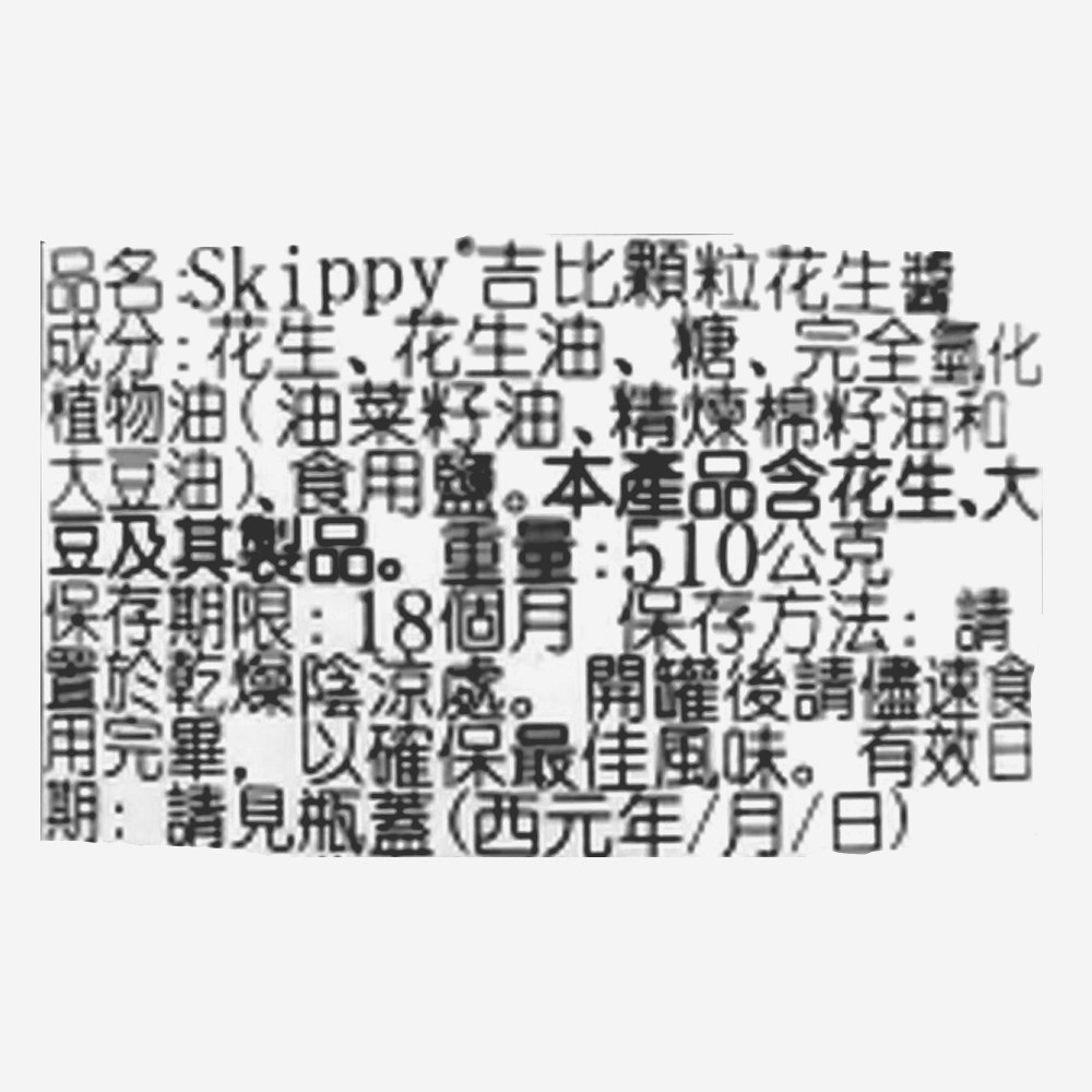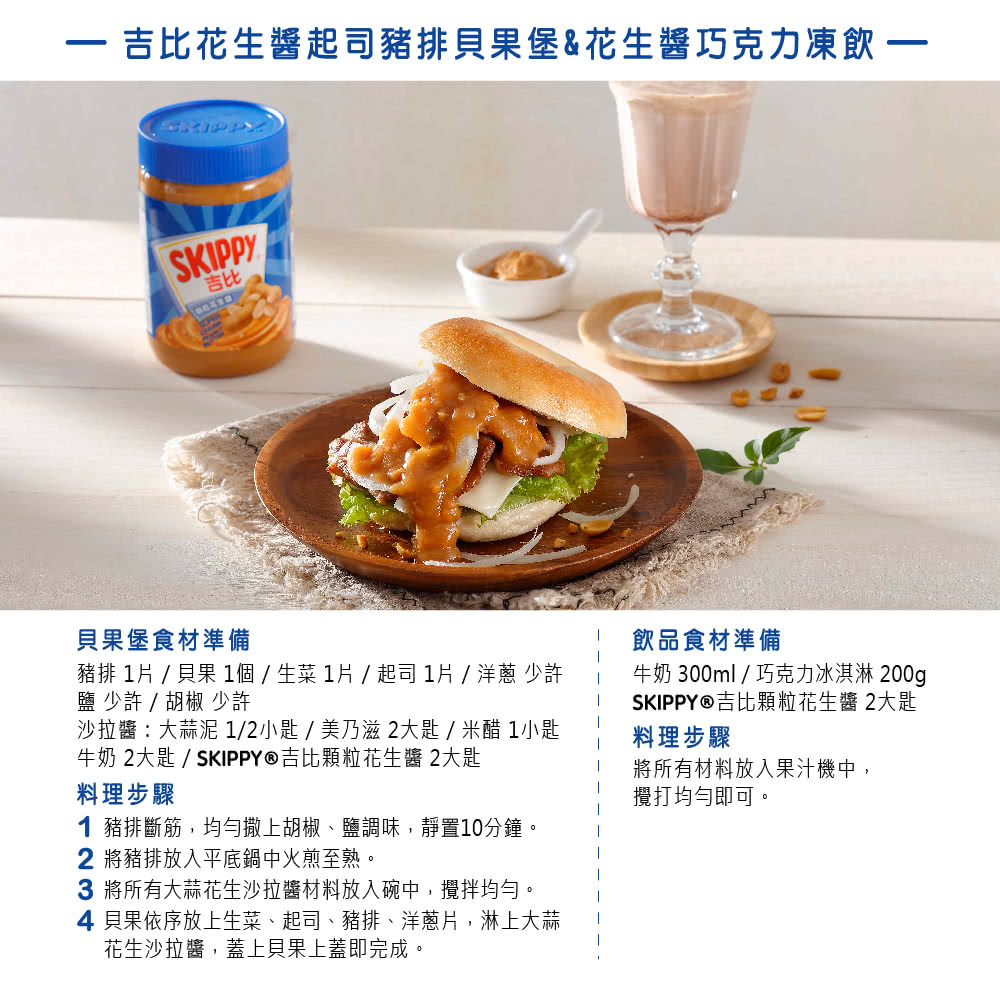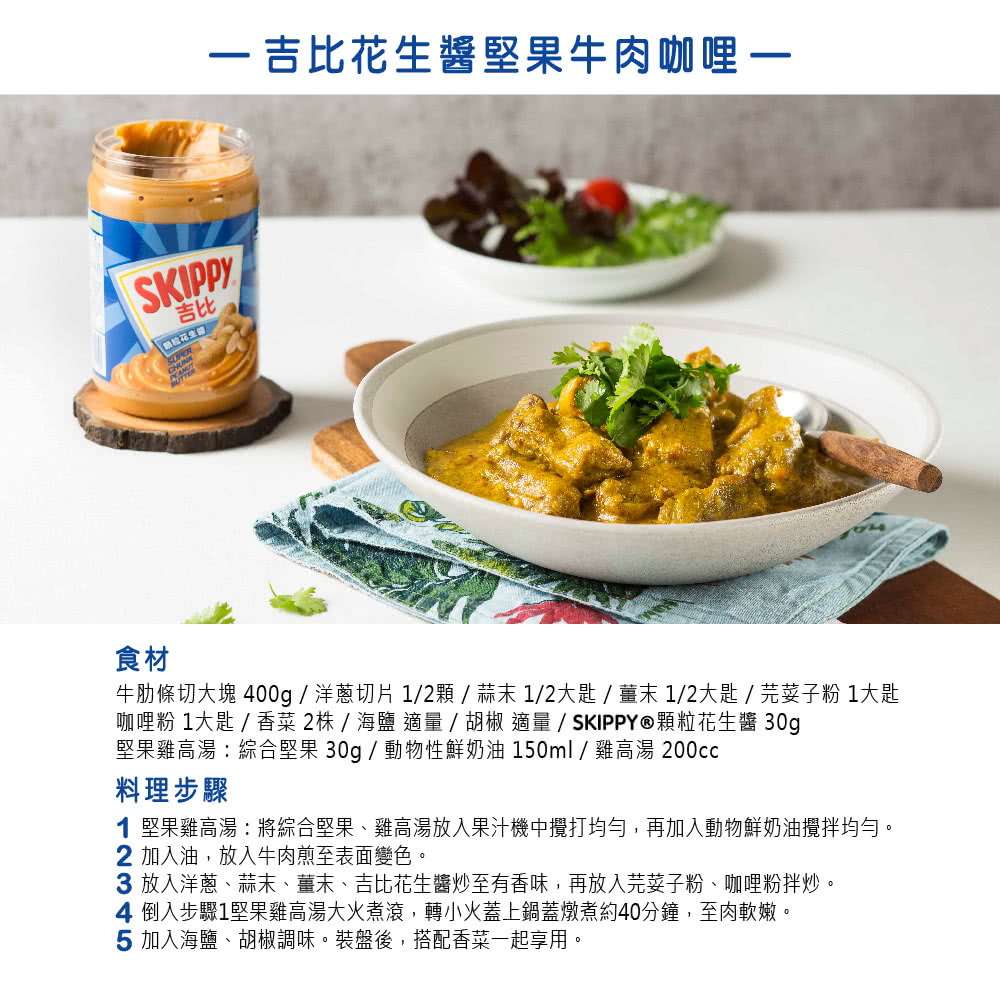 - 吉比顆粒花生醬,口感豐富,每一口都充滿濃郁花生香氣,帶來絕佳的味蕾享受。