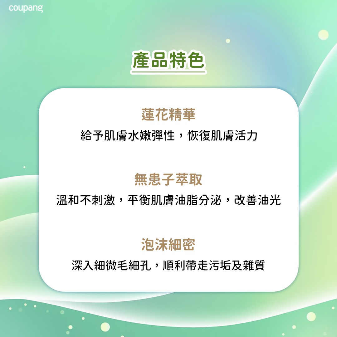 ・洗臉時溫和不刺激,蓮花精華提供水嫩保濕效果。