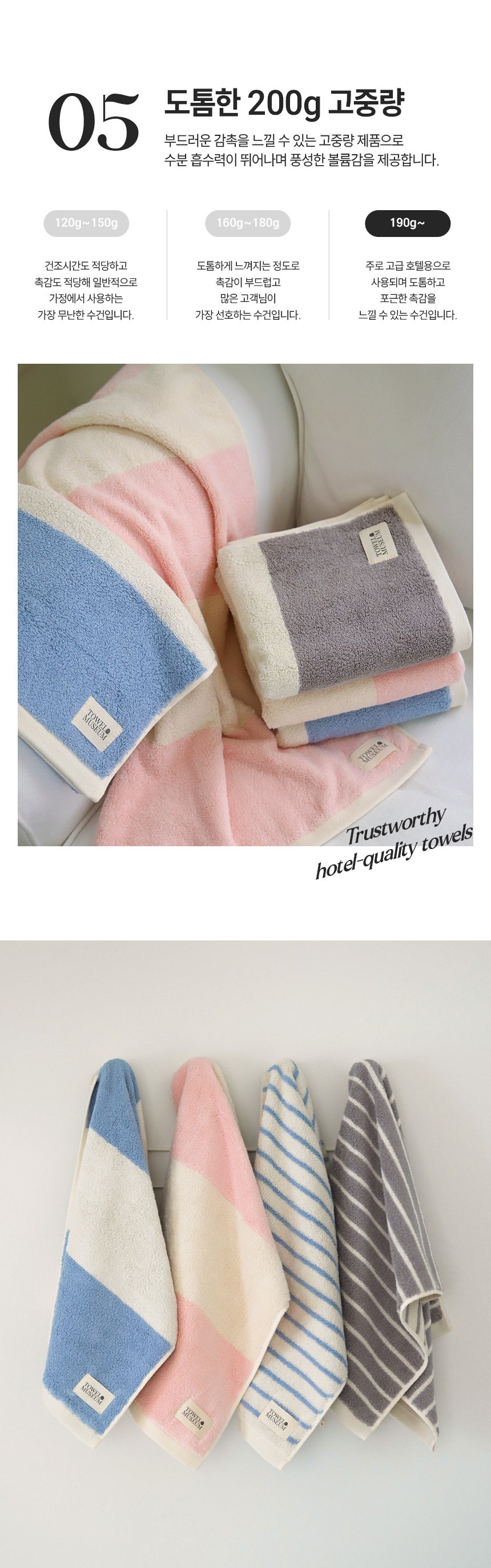 - 200克高克重毛巾,厚實蓬鬆,吸水力強,快速吸乾水分,享受乾爽舒適的沐浴時光。