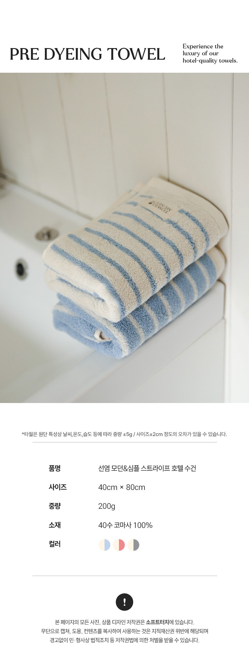 SOFT TOUCH 色織現代條紋飯店毛巾,採用高品質40支精梳棉紗製成,觸感柔軟細膩,呵護您的肌膚。獨特的色織工藝,使條紋顏色鮮明均勻,不易褪色,持久耐用。200克的高克重設計,帶來厚實蓬鬆的觸感,吸水性極佳,讓您在沐浴後快速享受乾爽舒適。簡約現代的條紋設計,為您的浴室增添時尚氣息,提升生活質感。這款毛巾不僅實用,更是您品味生活的體現。