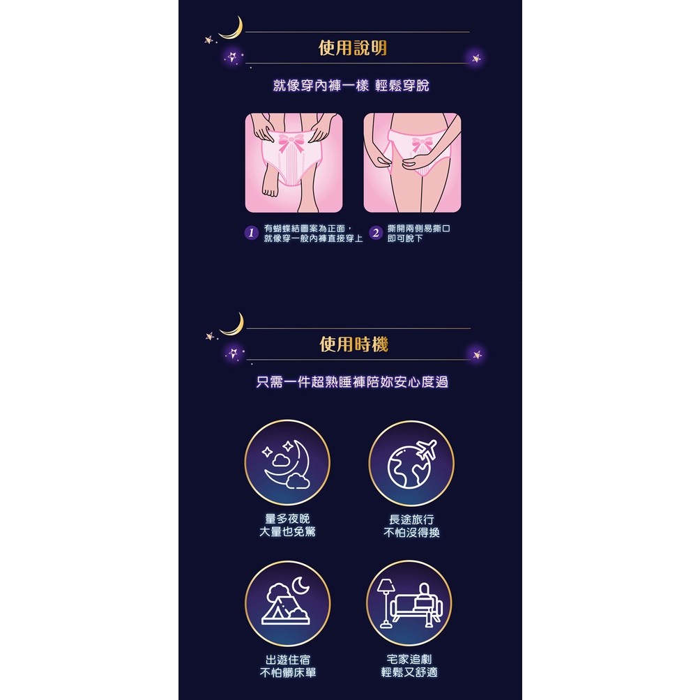 - 超熟睡內褲型衛生棉,整夜安心防漏,享受舒適睡眠體驗。