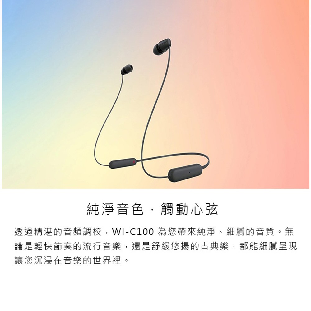 SONY WI-C100B 無線入耳式耳機,讓您擺脫線纜束縛,享受自由聆聽的樂趣,確保佩戴舒適穩固,適合長時間使用。無論是通勤、運動或居家,都能隨時沉浸在音樂世界中。藍牙無線連接技術,讓您輕鬆配對手機或其他設備,享受清晰音質。頸掛式設計方便攜帶,不易丟失,是您日常生活的理想音樂伴侶。SONY品牌保證,品質值得信賴。