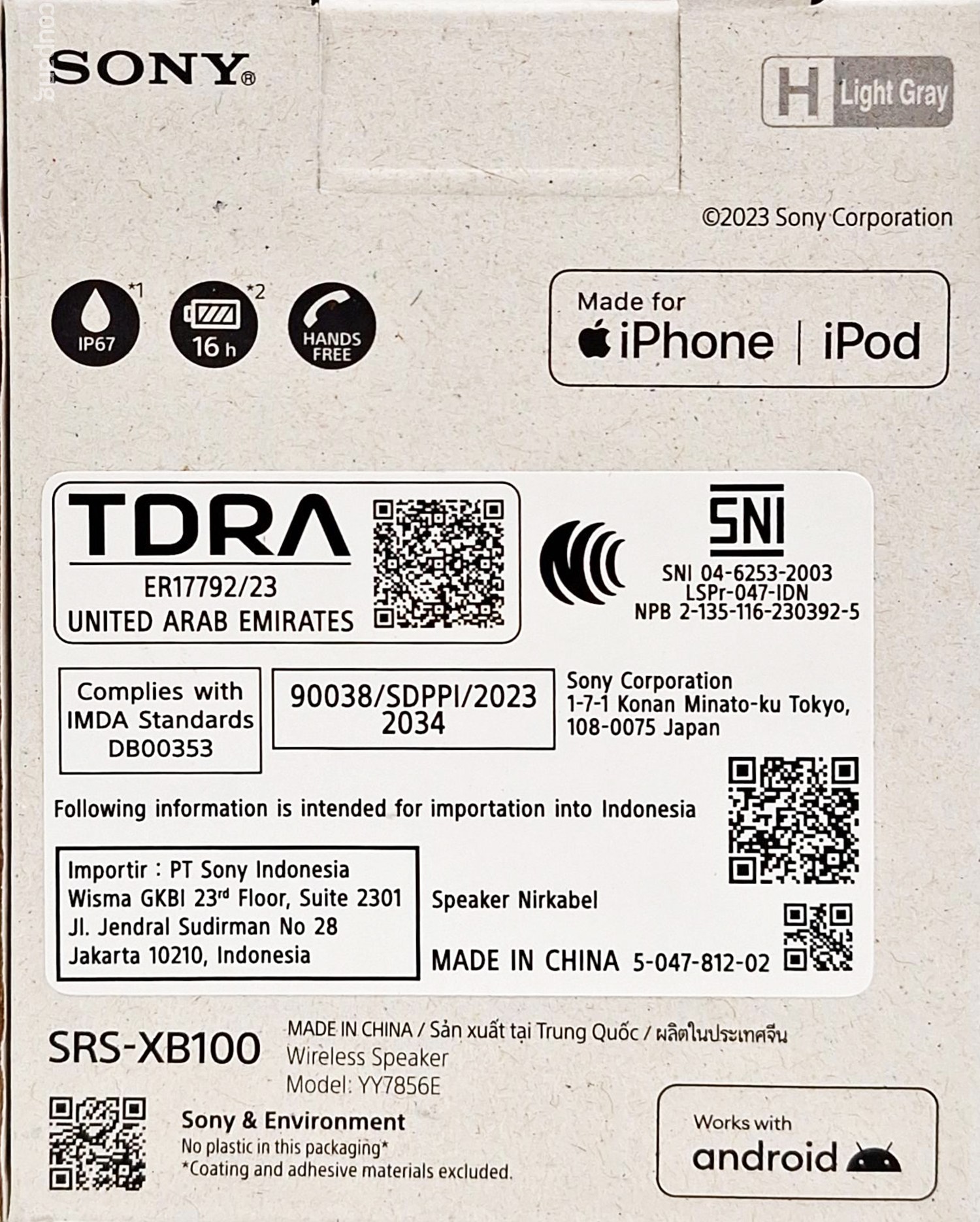 SONY 索尼 SRS-XB100 無線喇叭,以其輕巧便攜的設計,讓您隨時隨地享受音樂。灰色外觀簡約時尚,重量僅 0.274 公斤,尺寸為 76 x 95 x 76 毫米,方便攜帶。具備藍牙 5.3 功能,可快速穩定地連接各種設備,並支援 USB Type-C 充電。一次充電可使用長達 16 小時,讓您盡情享受音樂不間斷。此外,它還具有 IP67 防水防塵等級,無論是戶外活動還是居家使用,都能安心享受音樂。