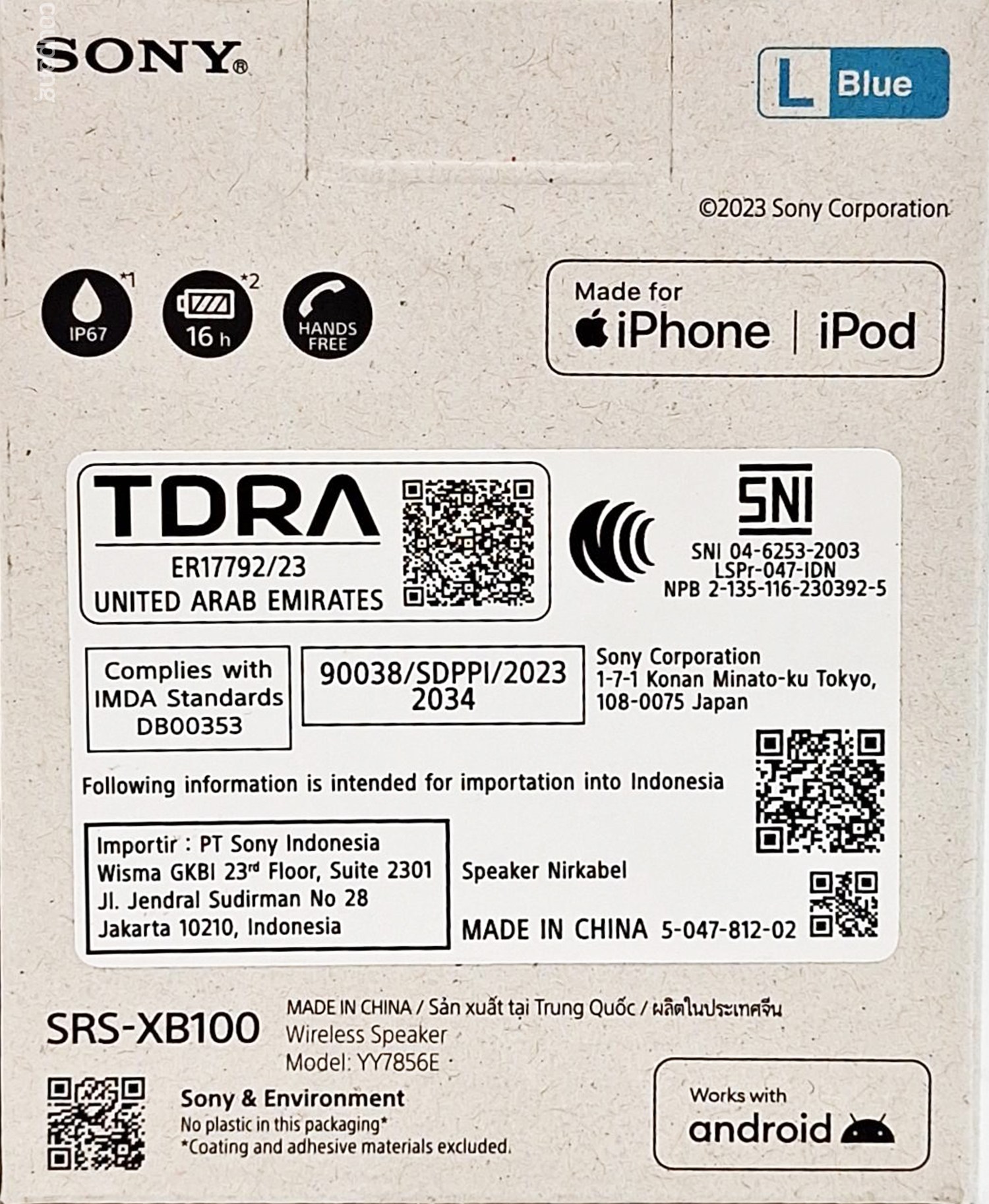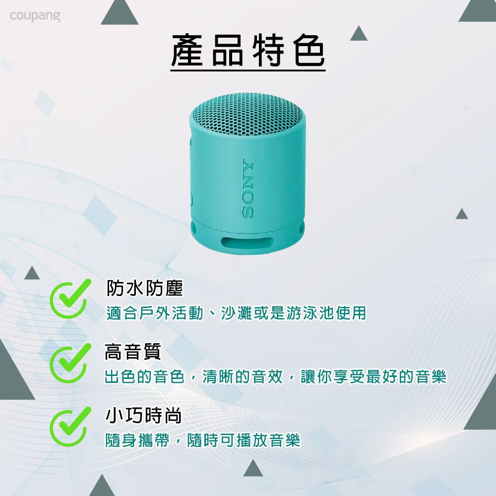 SONY 索尼 SRS-XB100 無線藍牙喇叭,讓您隨時隨地享受音樂的樂趣。這款藍色迷你喇叭擁有 IP67 等級的防水防塵功能,無論在戶外活動、沙灘或泳池邊都能安心使用。內建藍牙 5.3 技術,提供穩定的無線連接,使用時間長達 16 小時,讓您盡情享受音樂。小巧輕便的設計,重量僅 0.274 公斤,方便攜帶,隨時隨地都能播放音樂。此外,它還具備 LED 指示燈,可顯示剩餘電量,讓您隨時掌握使用狀況。