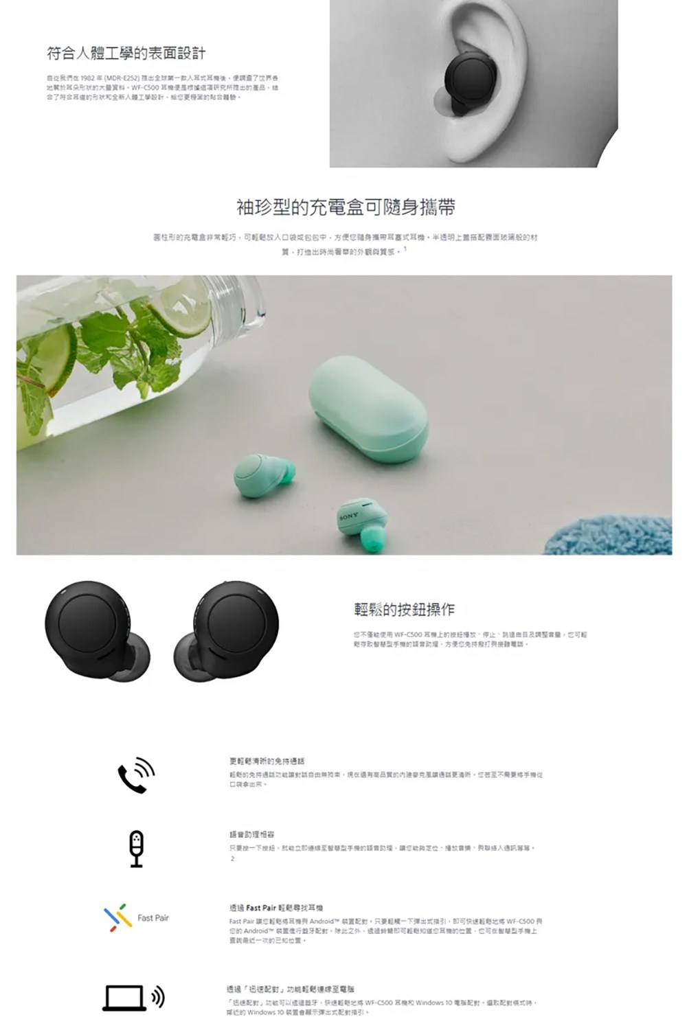 - 享受索尼真無線耳機帶來的自由,輕巧設計讓您長時間佩戴也感到舒適無負擔。