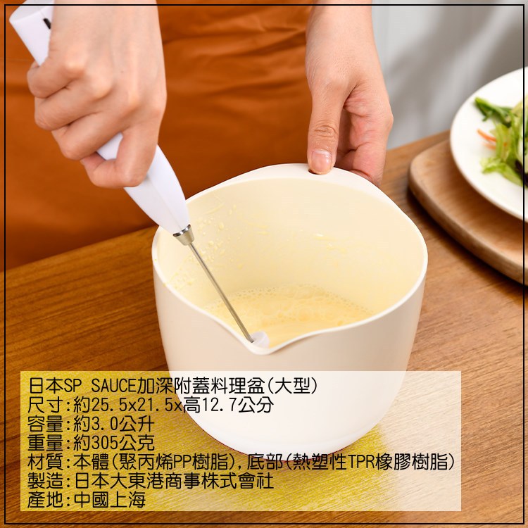 SP SAUCE大型加深附蓋料理盆,是您廚房裡不可或缺的好幫手。加深設計讓食材不易濺出,攪拌更輕鬆。附蓋設計有效防塵防蟲,確保食材衛生。底部防滑設計,料理盆穩固不滑動,讓您使用更安心。3L大容量,滿足您一次處理大量食材的需求,讓您輕鬆享受烹飪樂趣。