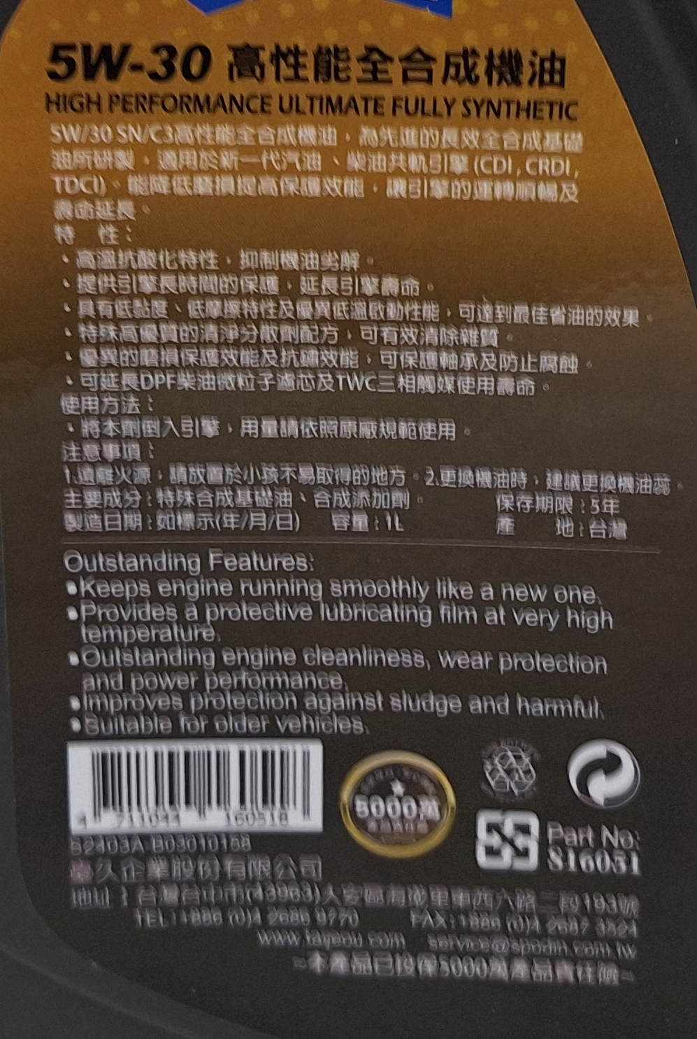- 全合成配方提供卓越保護,在各種駕駛條件下,確保引擎零件持久耐用。