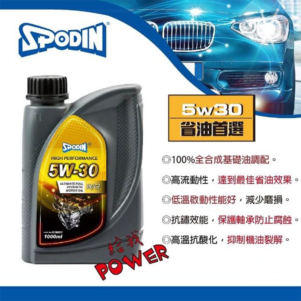 SPODIN 司伯汀 高性能全合成機油 SN/C3