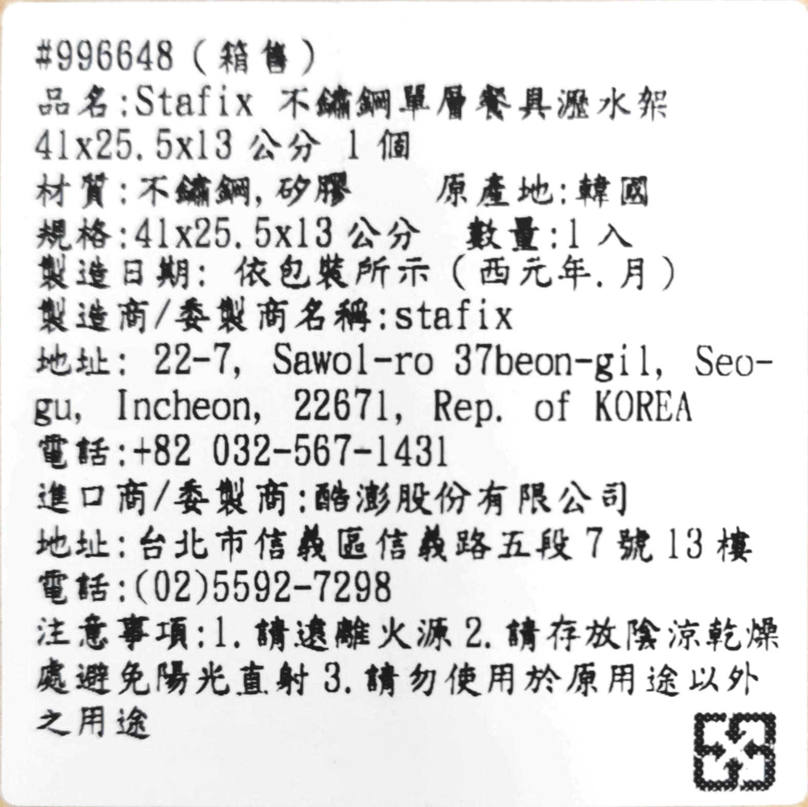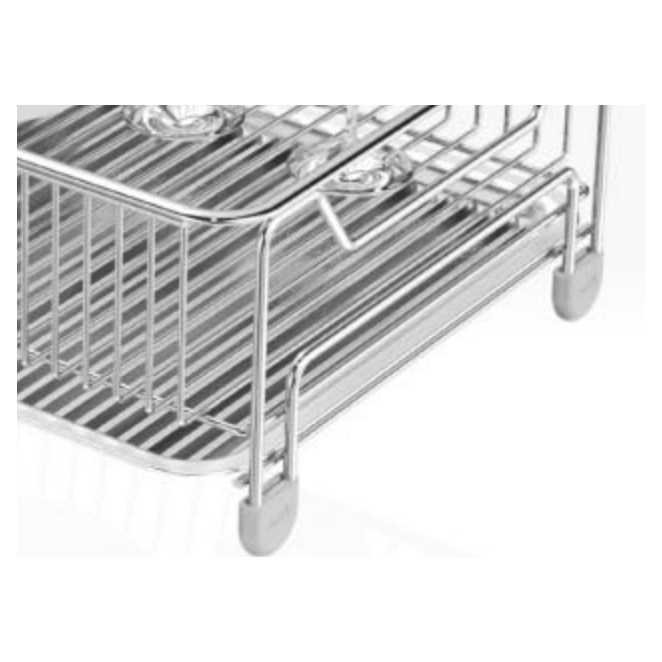 - 瀝水架底部有防滑矽膠墊,穩固放置於檯面,避免滑動造成危險。