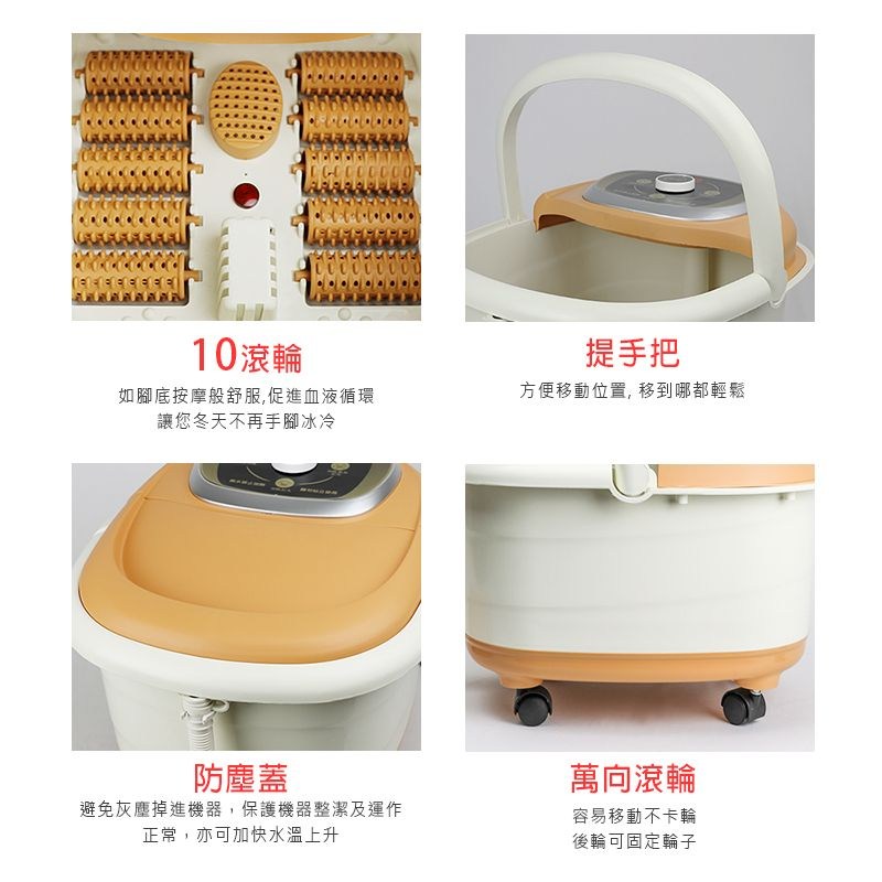 這款加熱式10滾輪氣泡按摩足浴機HF-G592H,讓您在家也能享受SPA級的足部護理。它結合了加熱、氣泡和滾輪按摩等多重功能,舒緩疲勞。內置的PTC陶瓷加熱系統安全可靠,能將水溫維持在42~45度之間,讓您享受舒適的泡腳體驗。此外,增強保健效果。10個按摩滾輪能全方位按摩足底穴位,刺激反射區,達到全身放鬆的效果。產品尺寸為42.5x36.5x29cm,裝水容量為13L,方便移動和收納。