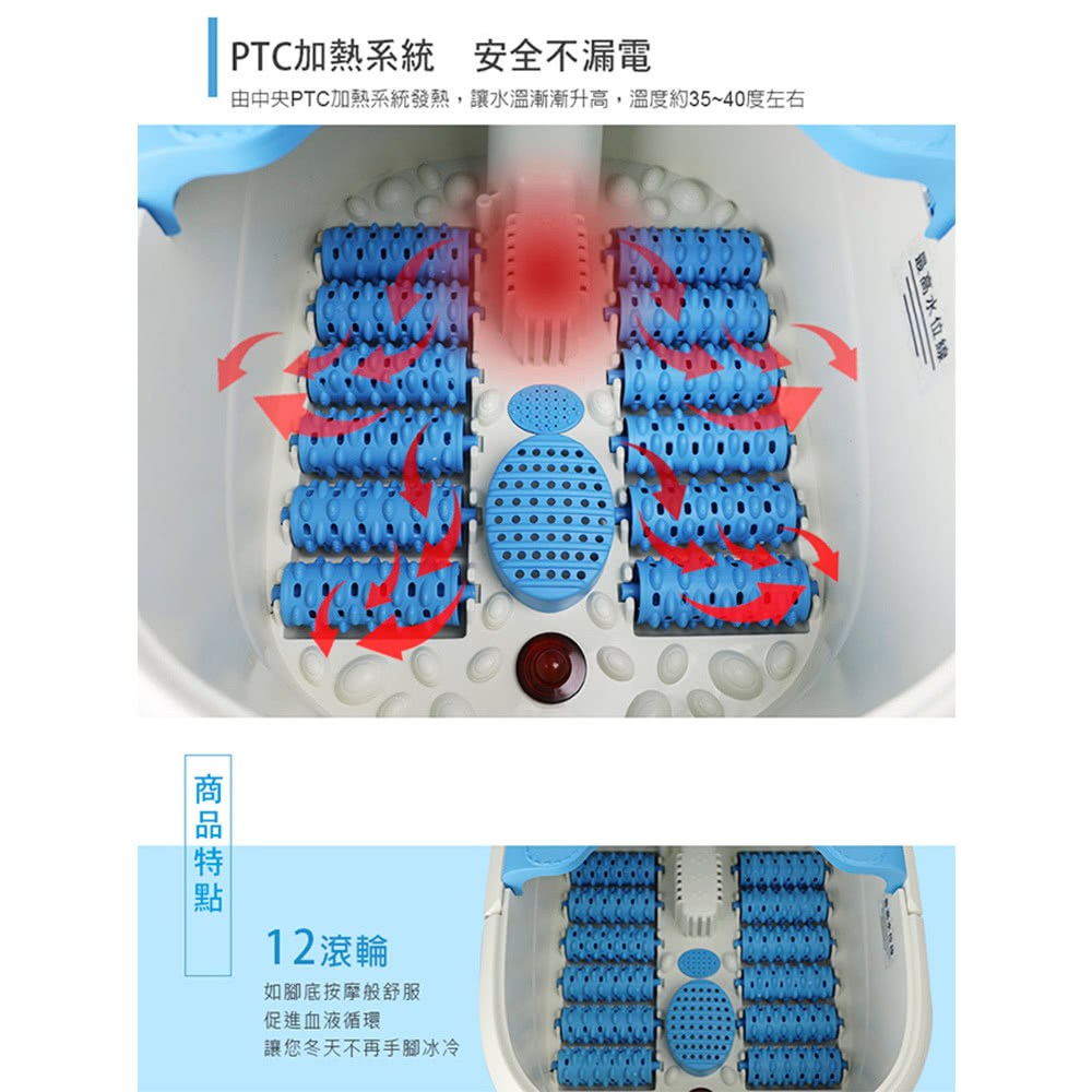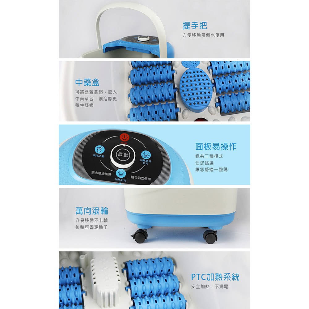 勳風包覆式氣泡滾輪泡腳機,讓您在家也能享受SPA級的足浴體驗。12個滾輪能有效按摩腳底穴道,促進血液循環,搭配氣泡功能,更能舒緩疲勞。三種模式可選,操作簡單,滿足不同需求。PTC加熱系統安全可靠,讓您安心享受泡腳的樂趣。此外,本產品還配備排水孔和活動滾輪,方便移動和清潔。