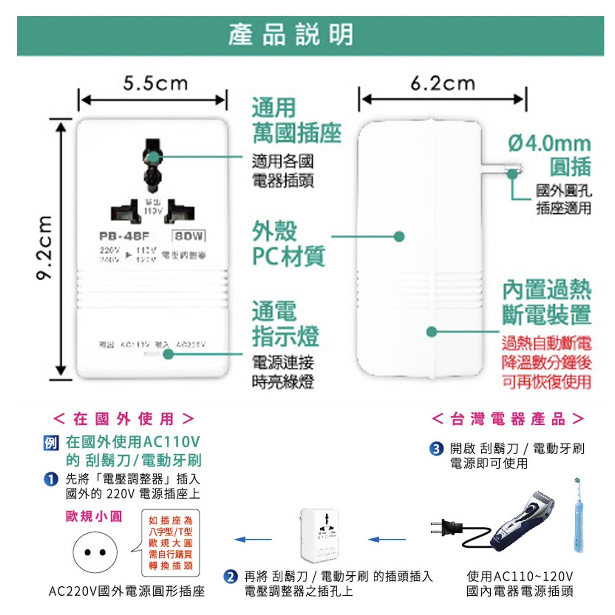 - 輕巧設計方便攜帶,讓您在旅行或出差時輕鬆使用,隨時轉換電壓。