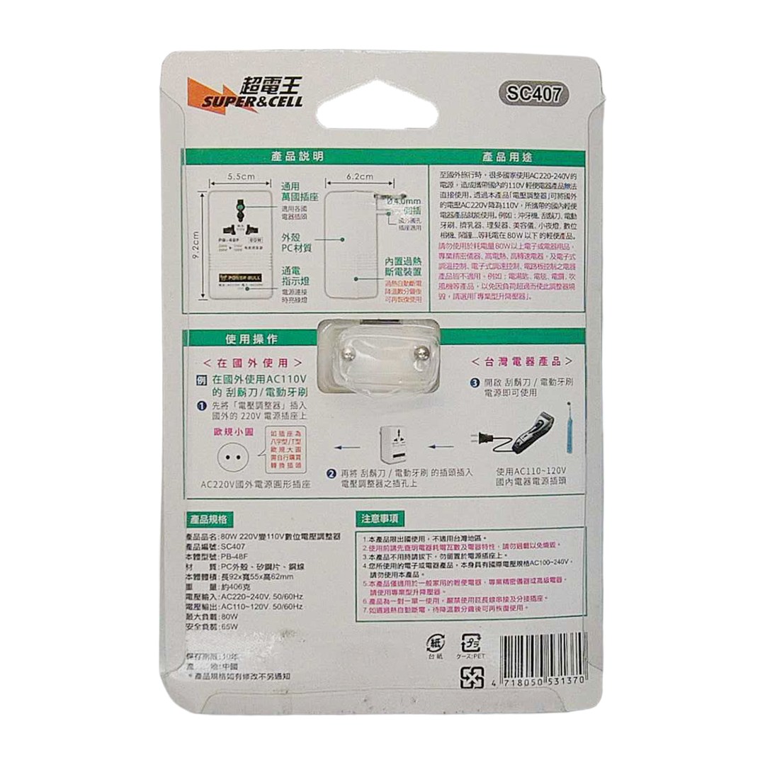 SUPERCELL 超電王 80W 220V轉110V數位電壓調整器 SC407 旅行必備, 1個
