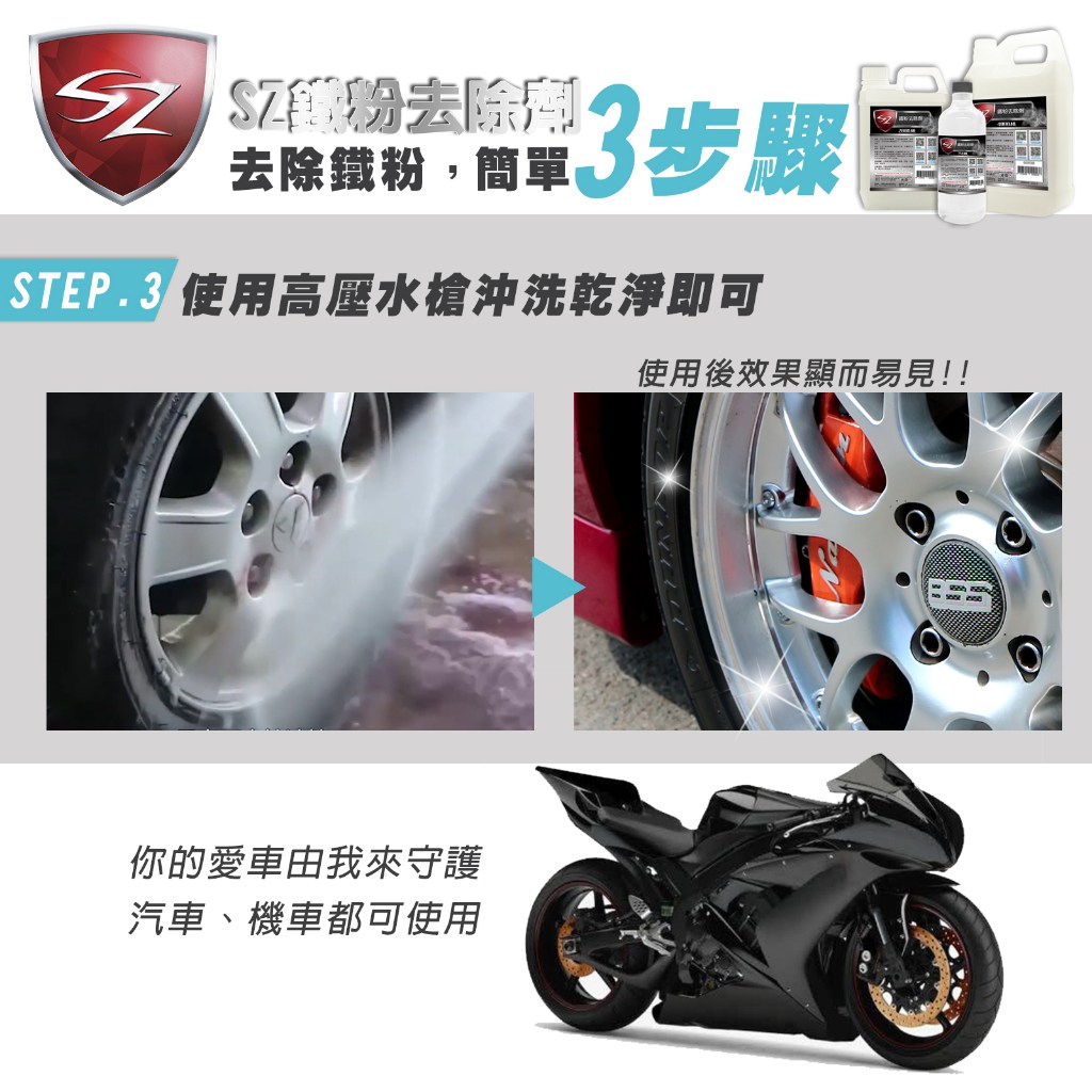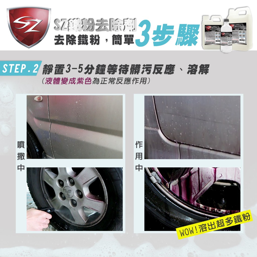 SZ鐵粉去除劑,輕鬆解決愛車表面鐵粉問題,讓您的愛車恢復光亮如新。本產品採用特殊配方,能有效去除車身、輪框等部位的鐵粉、剎車屑等污染物,避免長期累積導致車漆受損、輪框生鏽。使用方法簡單,只需噴灑於需清潔部位,靜置3-5分鐘待其反應,再以清水沖洗即可。4L大容量,一桶滿足多次使用需求,經濟實惠。選擇SZ鐵粉去除劑,給您的愛車全方位的呵護。