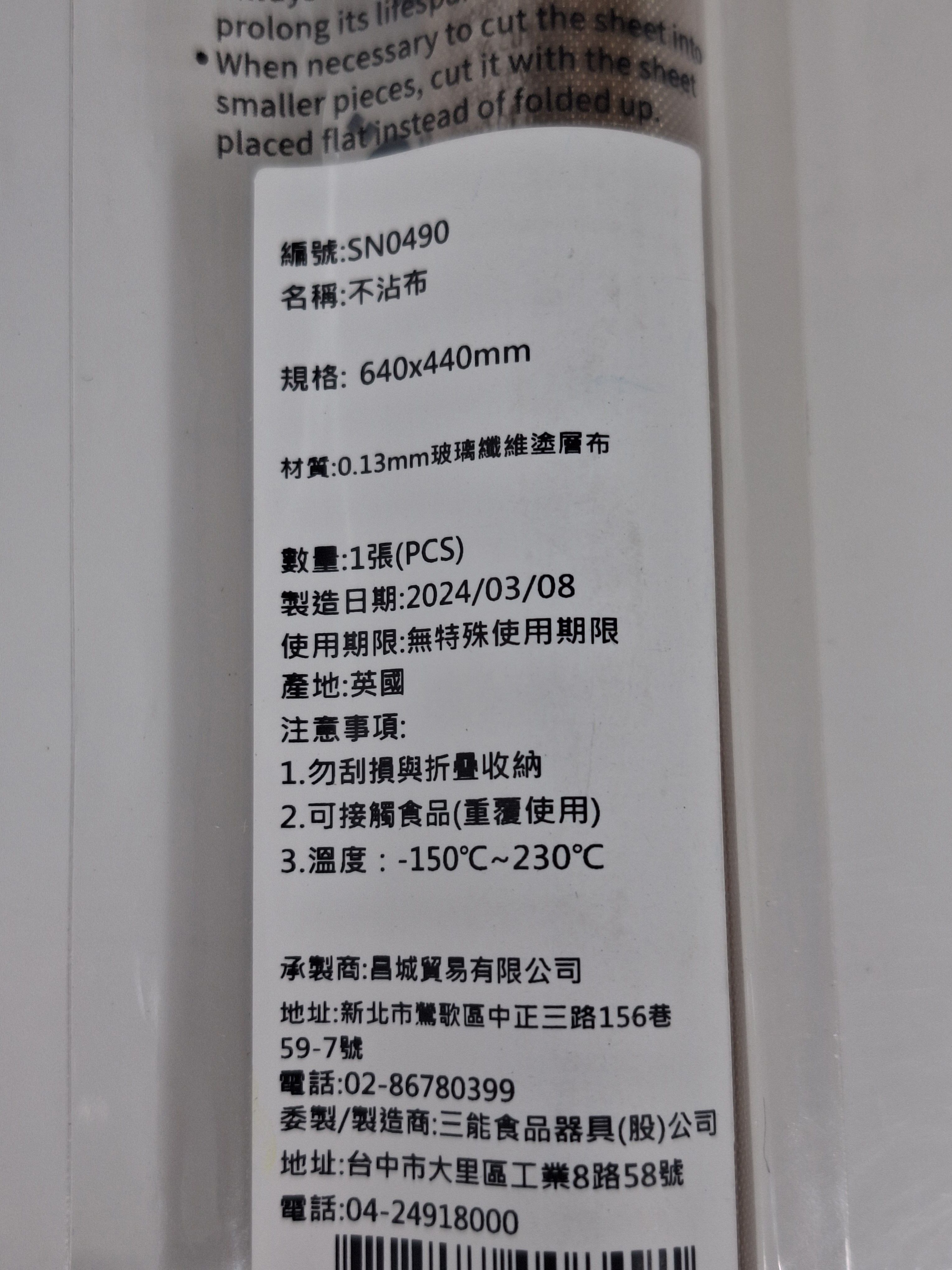三能不沾布,型號SN0490,尺寸640 x 440mm,是您烘焙的理想選擇。這款不沾布採用0.13mm玻璃纖維塗層布製成,確保食物不黏連,輕鬆脫模,讓您的烘焙作品完美無瑕。適用於-150°C至230°C的溫度範圍,無論是製作餅乾、蛋糕還是麵包,都能提供穩定的烘焙效果。使用後易於清潔,只需輕輕擦拭即可,延長使用壽命。請注意,使用時避免刮損或摺疊收納,以保持其不沾性能。