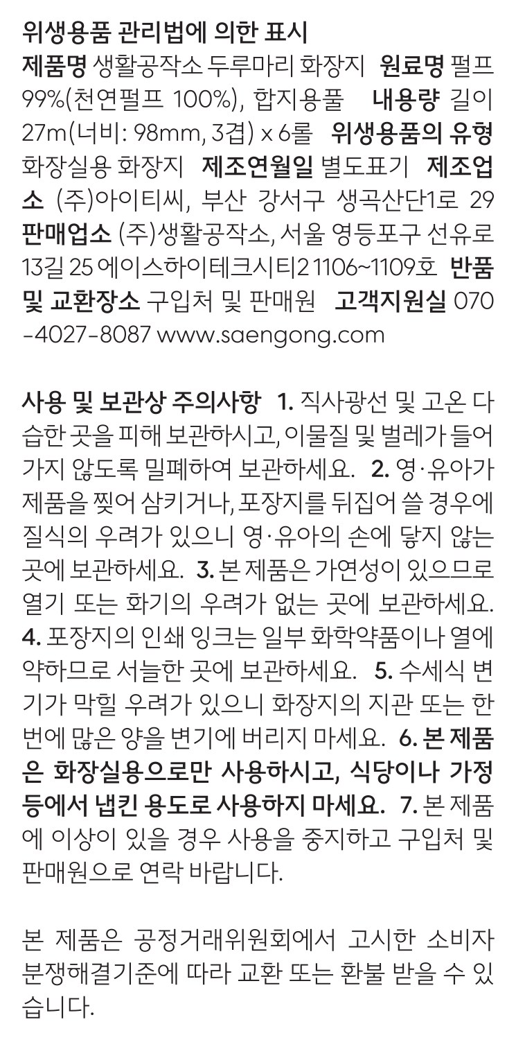 Saengong 生活工作所三層捲筒衛生紙,採用厚實的三層壓花原紙,觸感柔軟舒適。不含螢光增白劑,使用更安心。獨立小包裝設計,方便收納,保持衛生。100%天然木漿,給您和家人更健康的選擇。適用於居家、辦公室等多種場合,是您生活中的必備品。讓您享受潔淨舒適的生活。
