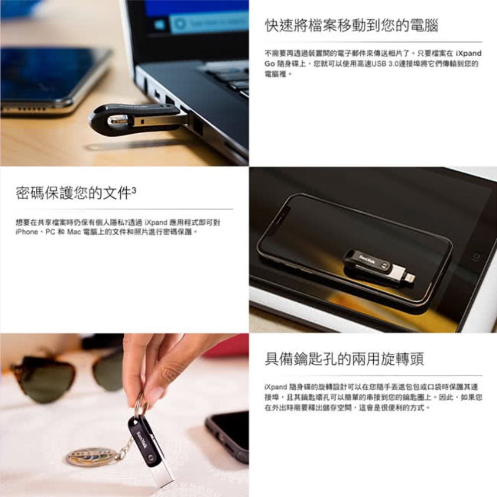 SanDisk iXpand Go 行動隨身碟讓您輕鬆解決 iPhone/iPad 儲存空間不足的問題。這款 64GB 的隨身碟具備 USB 3.0 和 Lightning 雙接口,方便在 Apple 裝置、電腦之間快速傳輸檔案。無論是備份珍貴照片、影片,或是釋放手機空間,iXpand Go 都能提供安全可靠的儲存方案。其輕巧設計和鑰匙孔方便隨身攜帶,讓您隨時隨地都能存取重要資料。SanDisk 作為值得信賴的品牌,為您的數據安全提供保障。