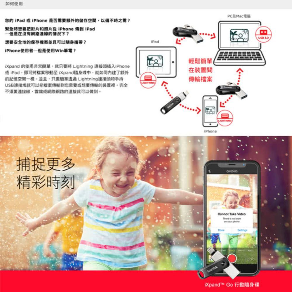 - 輕鬆擴充iPhone容量,不再擔心儲存空間不足,隨時享受影音娛樂體驗。