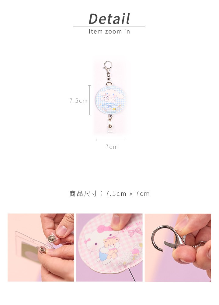 這款Sanrio三麗鷗皮質伸縮證件扣,以可愛的雙星仙子花邊設計,為您的辦公生活增添一抹童趣。尺寸為7.5 x 7cm,輕巧方便攜帶,採用優質皮革材質,觸感舒適且耐用。伸縮扣設計讓您無需取下證件即可輕鬆使用,提升工作效率。無論是學生證、員工證還是門禁卡,都能完美搭配,展現您的個人風格。正版授權商品,品質保證,讓您安心使用。