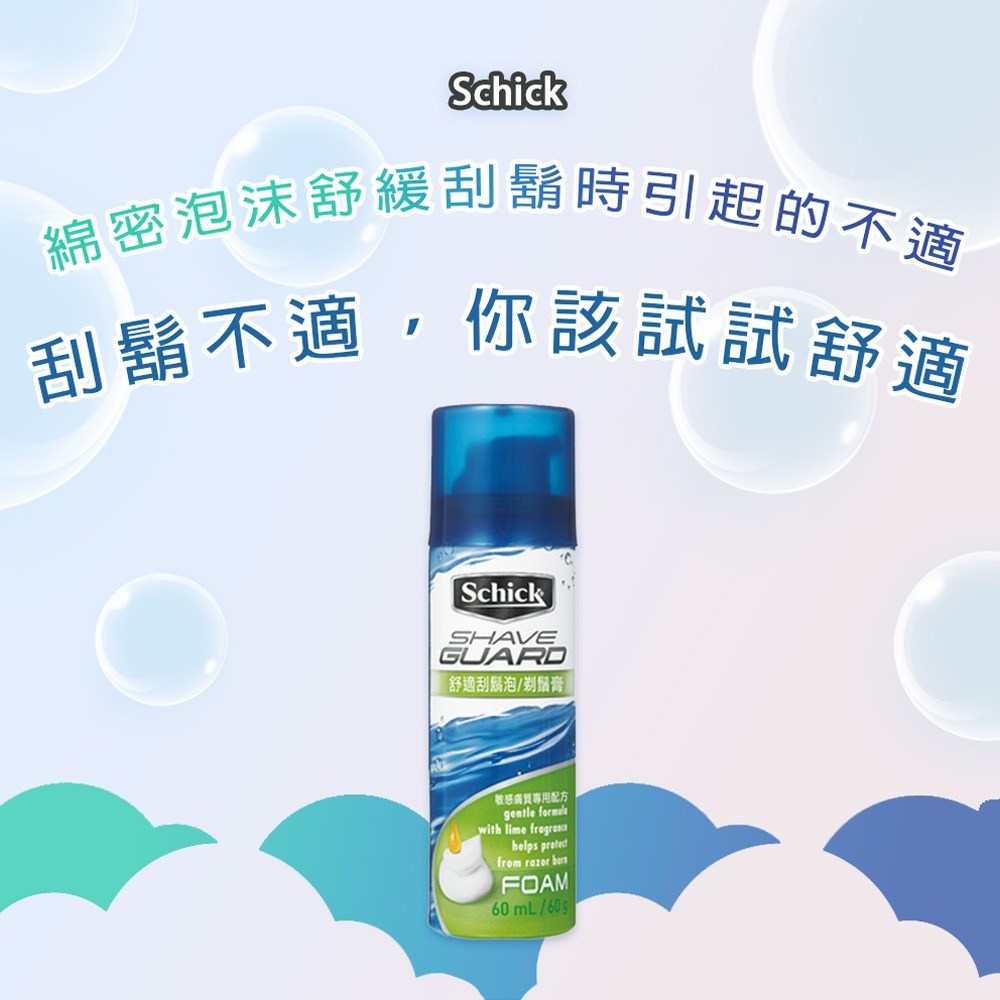 Schick 舒適牌刮鬍泡敏感型,專為敏感肌膚設計,提供溫和舒適的刮鬍體驗。其獨特配方能有效舒緩刮鬍時可能引起的不適,減少紅腫和刺激,讓刮鬍過程更加順暢。清新青檸香氣,為您開啟活力充沛的一天。綿密的泡沫質地,能軟化鬍鬚,使刮鬍刀更容易滑動,減少對皮膚的摩擦。60g輕巧包裝,方便攜帶,隨時享受舒適刮鬍。