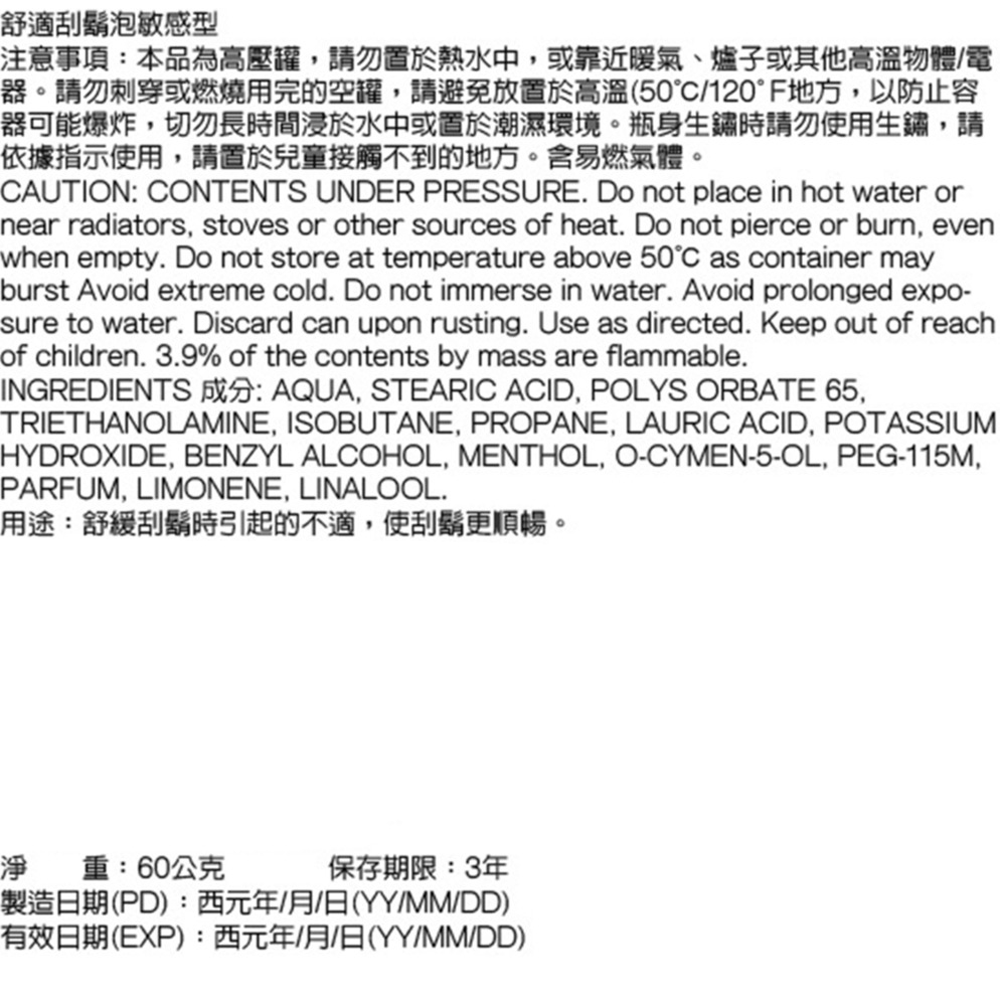 - 專為敏感肌膚設計,刮鬍時減少刺激,享受舒適的刮鬍體驗。