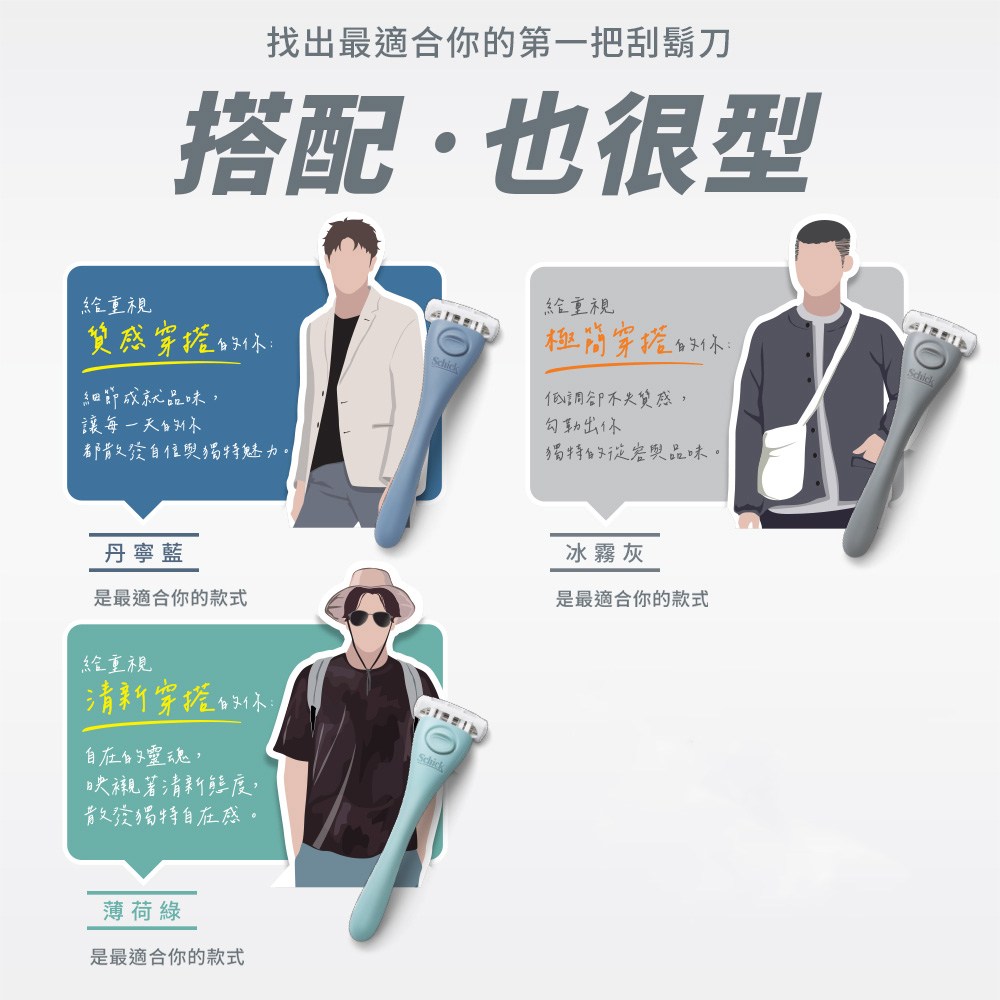 - 第一把刮鬍刀,專為初學者設計,簡單易上手,快速完成每日刮鬍。