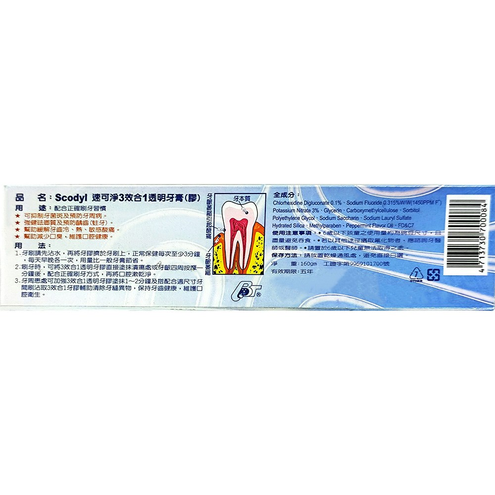 速可淨3效合1透明牙膏,為您帶來全方位的口腔護理。這款獨特的透明牙膏,結合了多重功效,能有效抑制口腔細菌,同時強化琺瑯質,讓您的牙齒更健康。此外,它還能舒緩牙齒因冷、熱、酸引起的敏感不適,減少口臭,維持口腔清新。速可淨3效合1透明牙膏,是您維持口腔健康的理想選擇,讓您每天都擁有自信笑容。