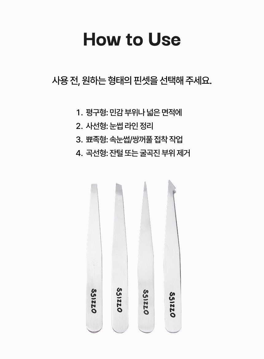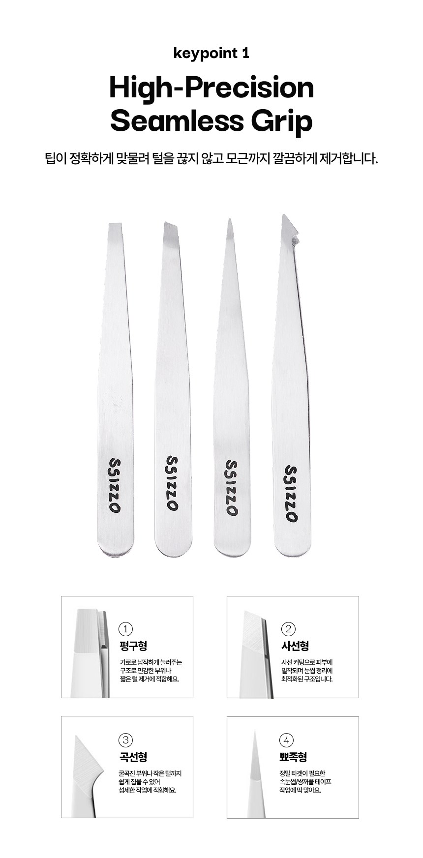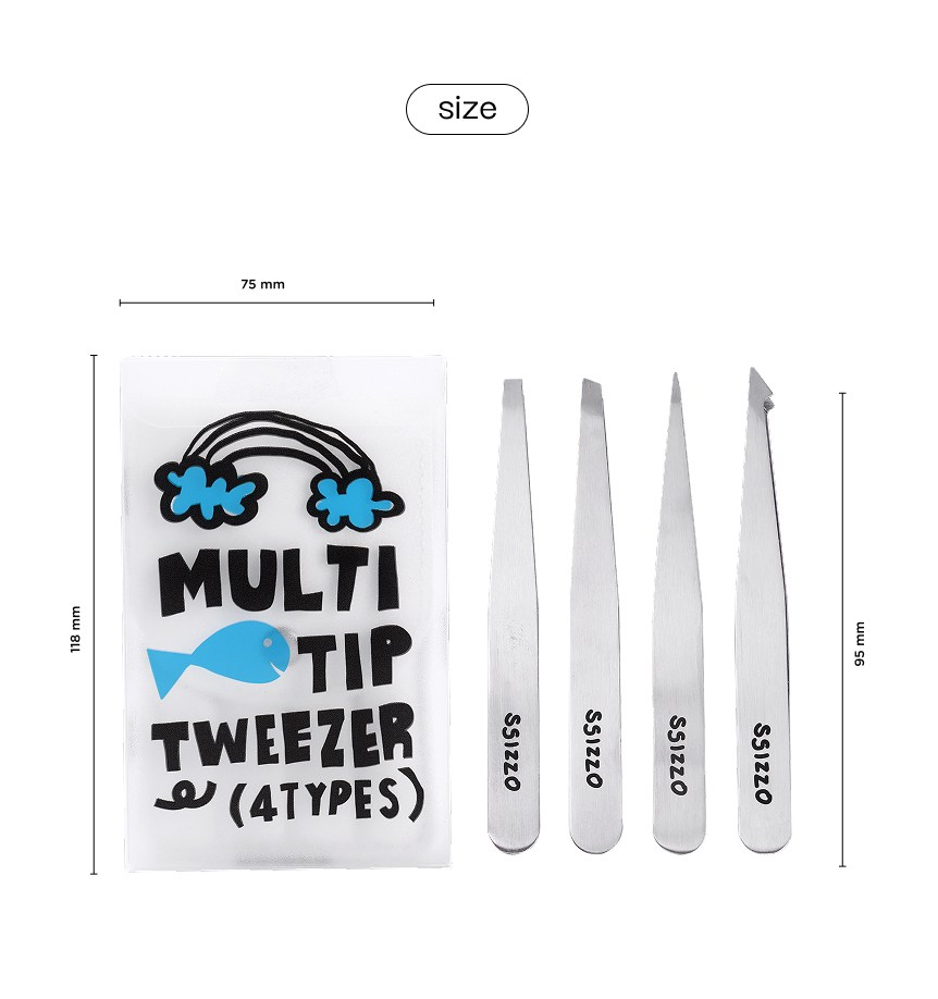 - SSIZZO專業鑷子四件組,多種尖端設計,輕鬆應對各種細微毛髮,打造精緻眼妝。