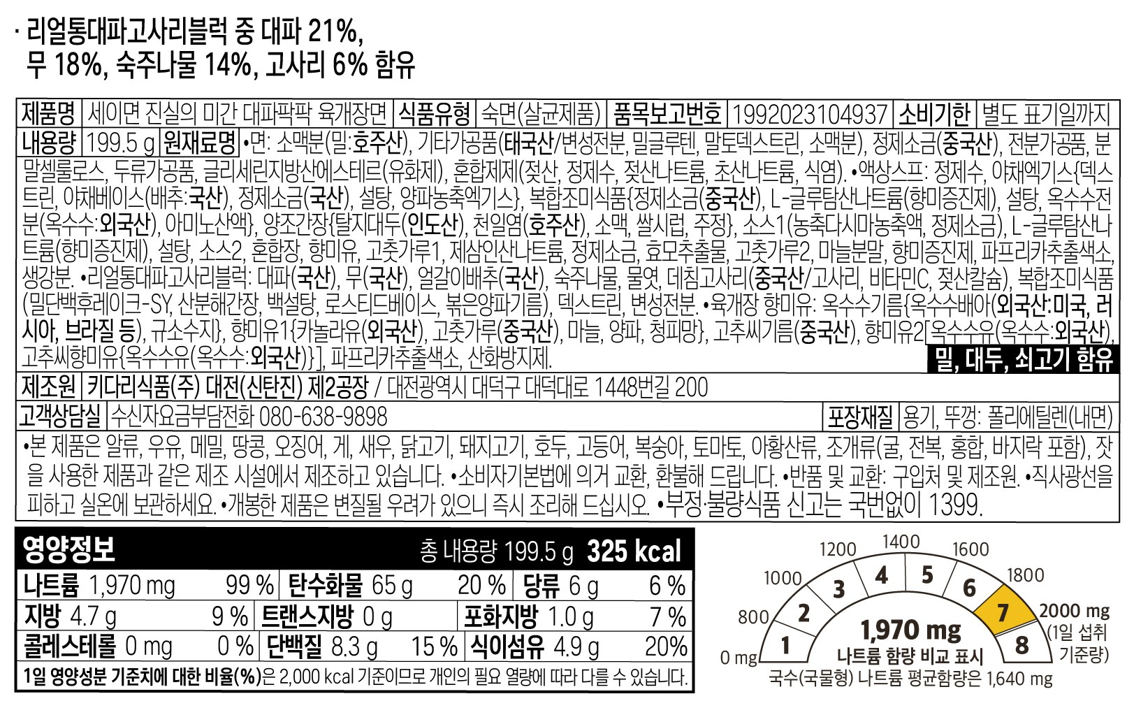 Seimyeon 真實的眉間 大蔥敲打 辣牛肉湯麵 199.5g, 7個