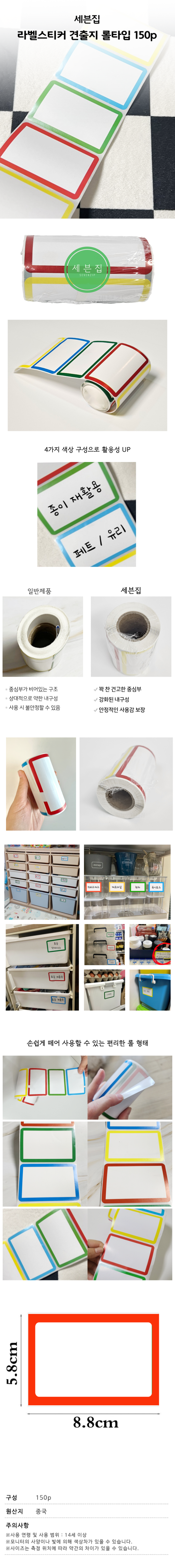 Sevenzip 捲筒式分類標籤貼紙, 混色, 150件, 1個