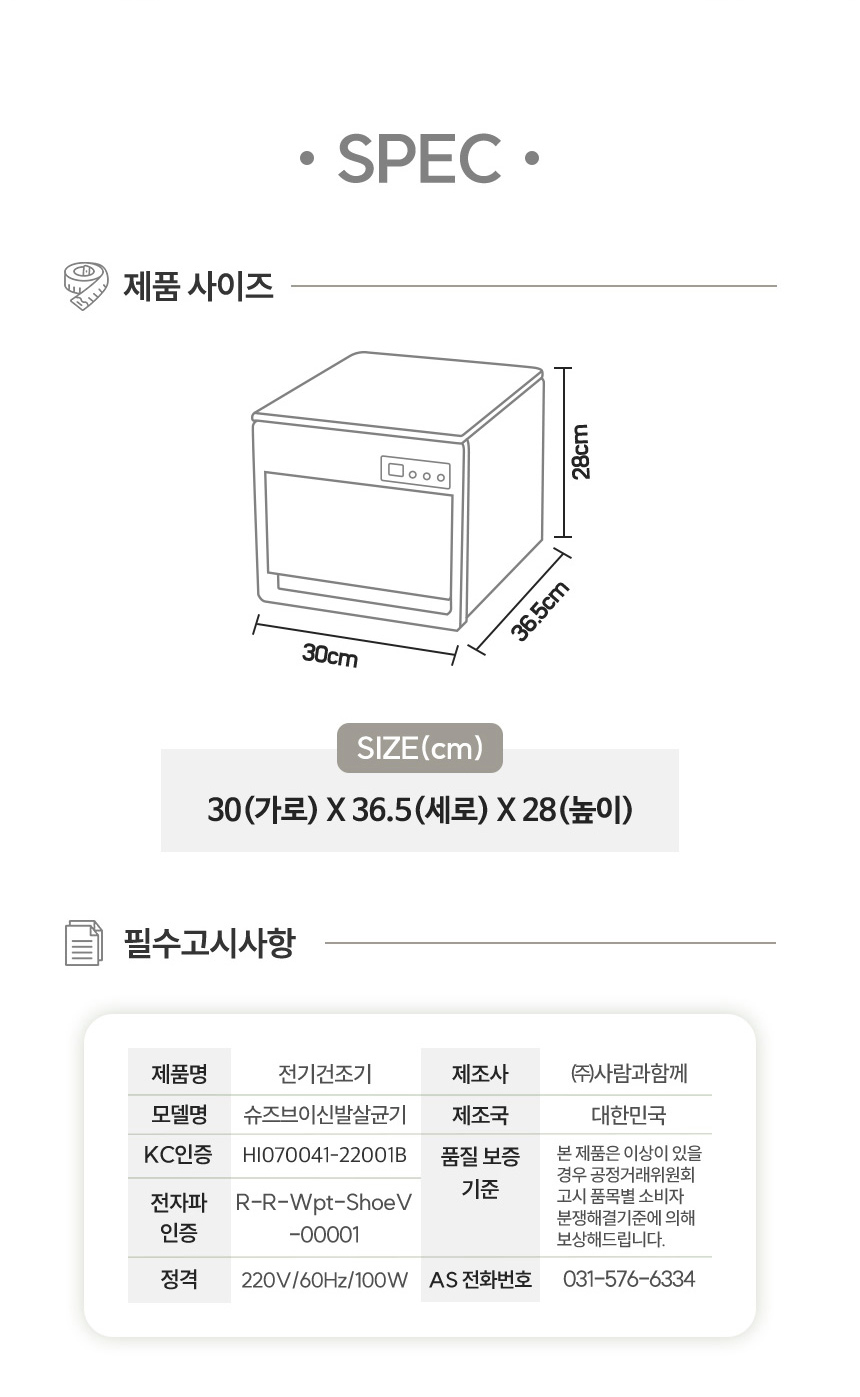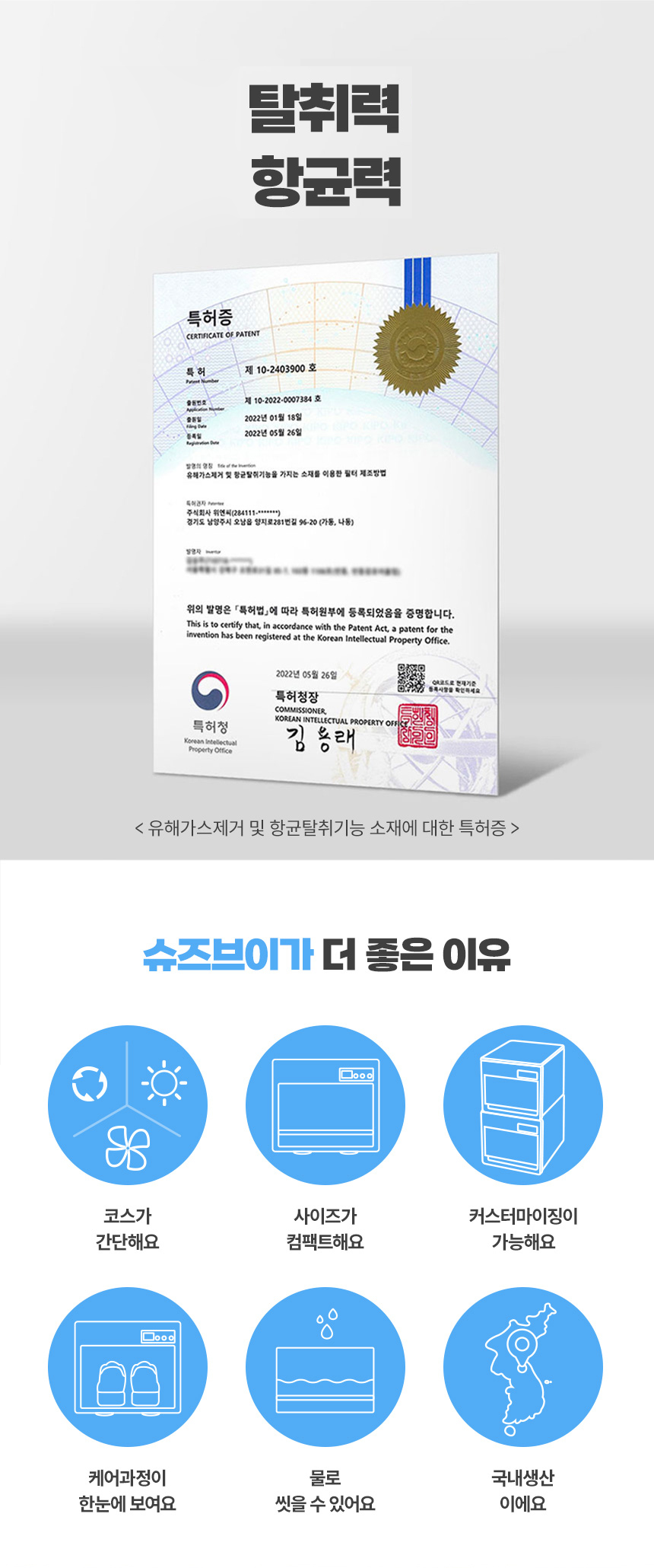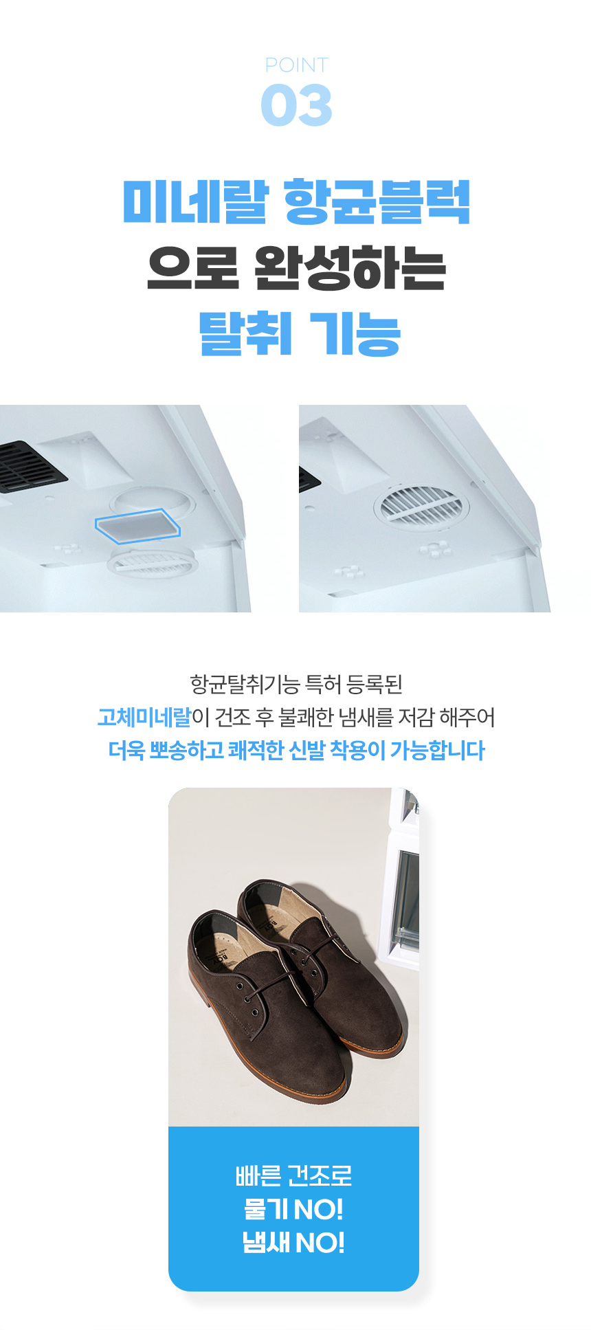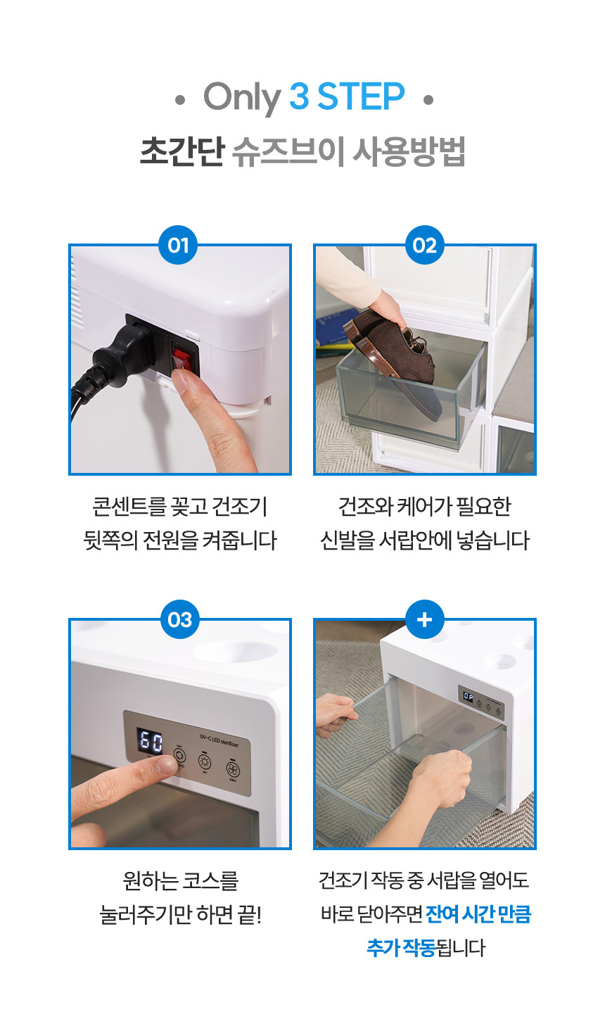Shoes-V鞋子乾燥殺菌機,採用UV-LED紫外線殺菌技術,能深入鞋子內部,有效去除99.99%的細菌,保持鞋內衛生。內建溫度感測器,維持40~50度的適當溫度,快速烘乾潮濕鞋子,避免高溫損傷鞋材。專利礦物抗菌除臭塊,有效減少乾燥後的不快氣味,讓您穿鞋時更乾爽舒適。尺寸緊湊,不佔空間,適合各種居家環境。操作簡單,一鍵啟動,輕鬆完成鞋子護理。韓國製造,一年內提供免費售後服務。