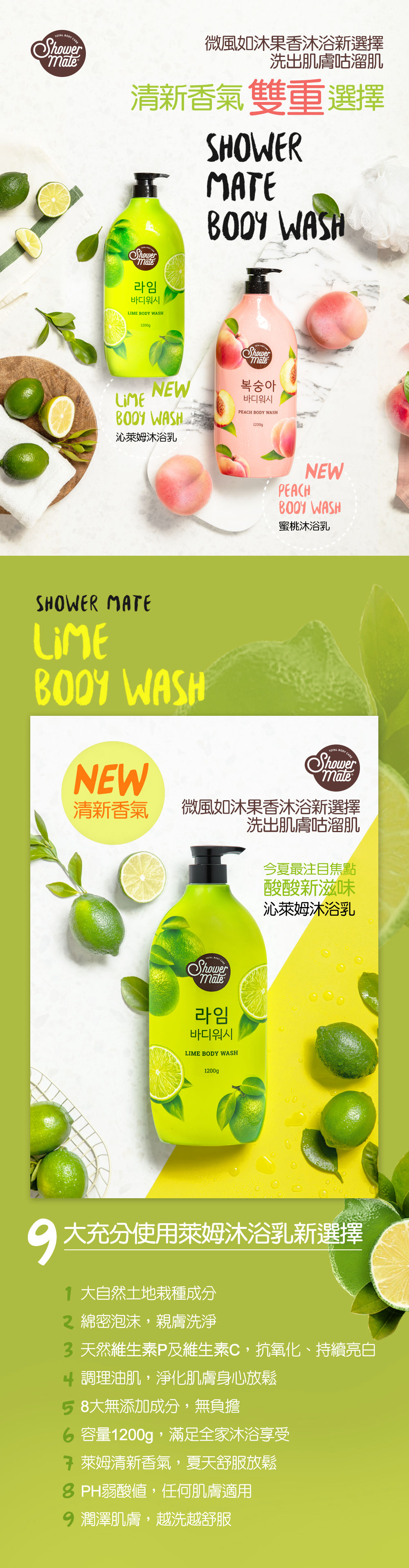 - 沁萊姆沐浴乳,洗後肌膚清爽不黏膩,享受夏日沐浴的清新體驗。