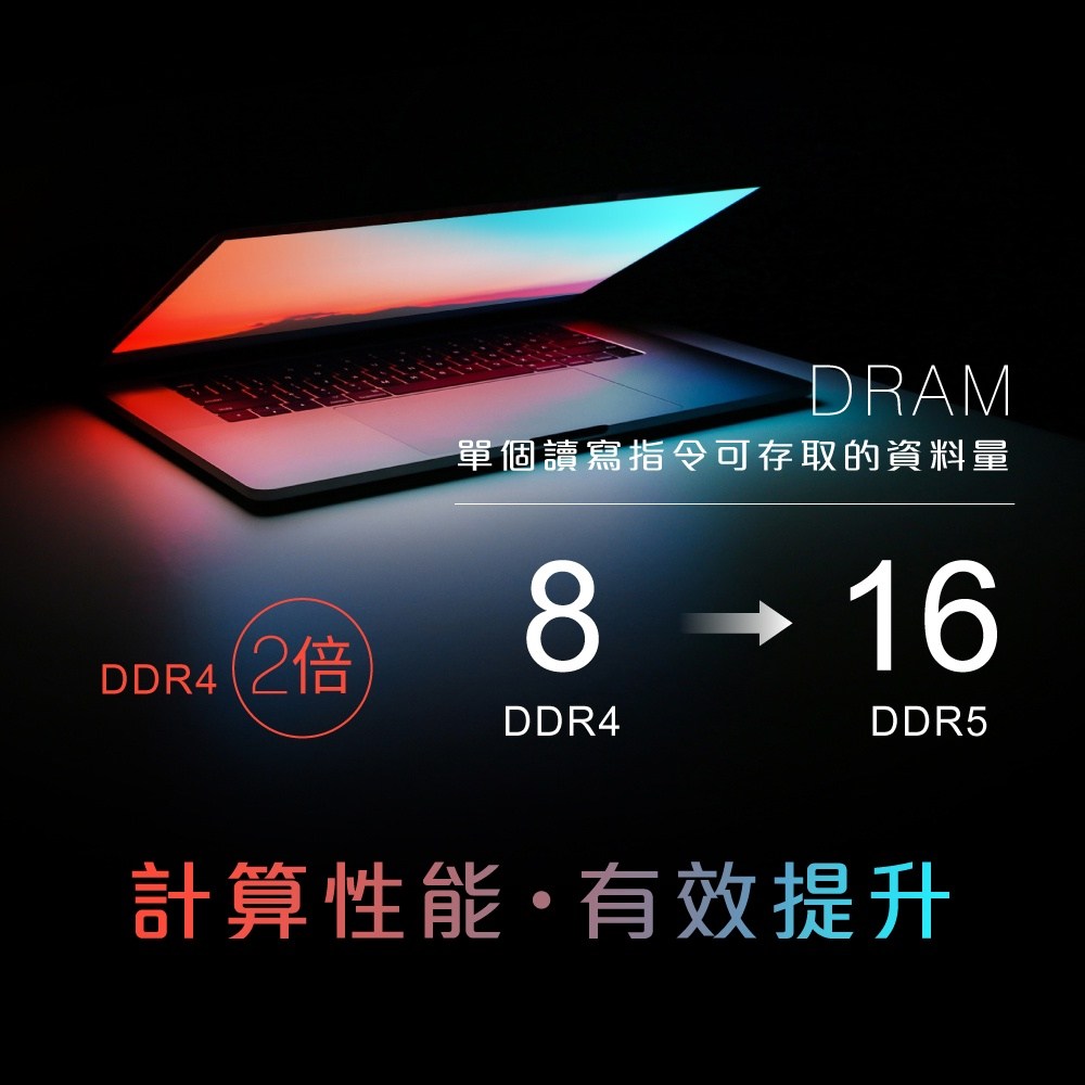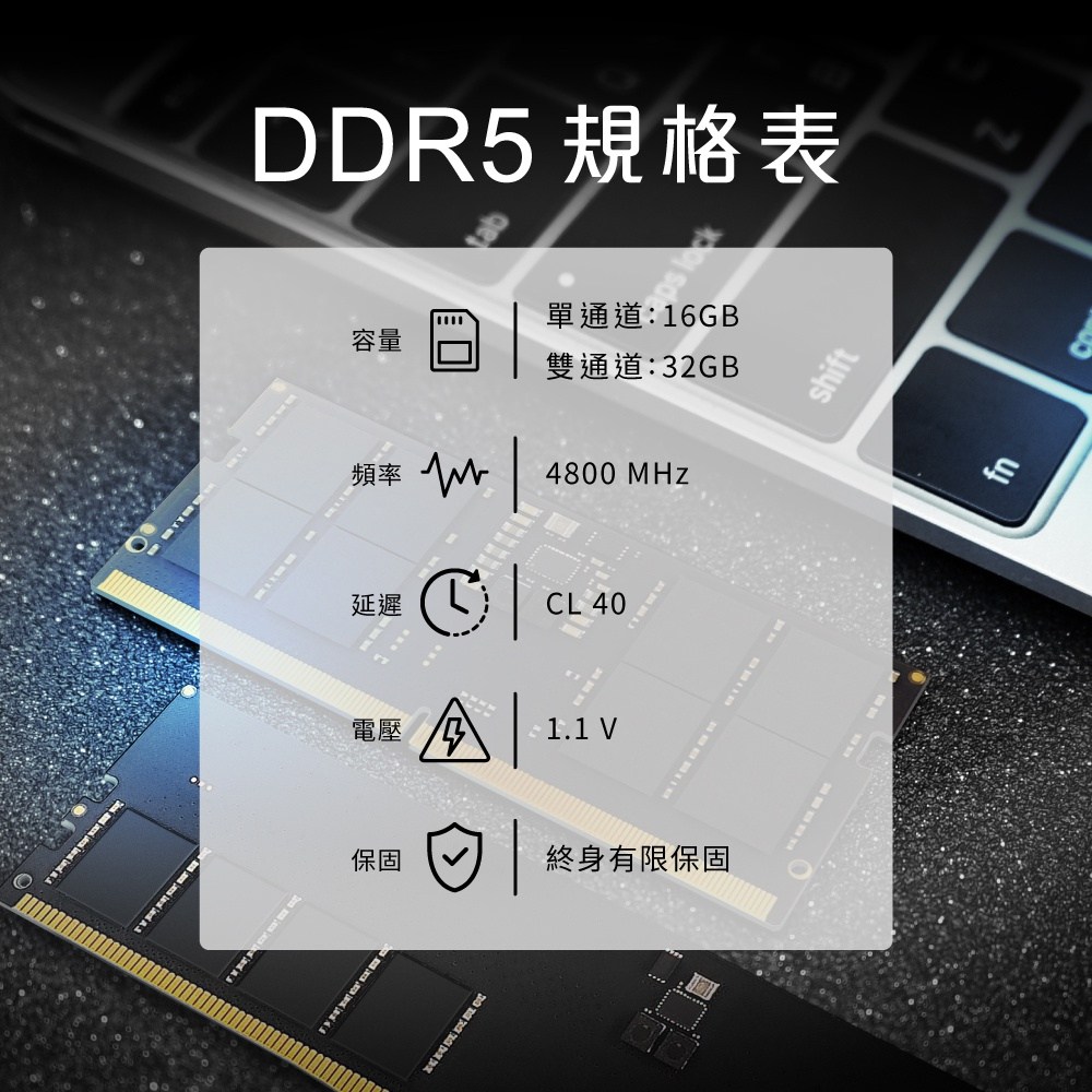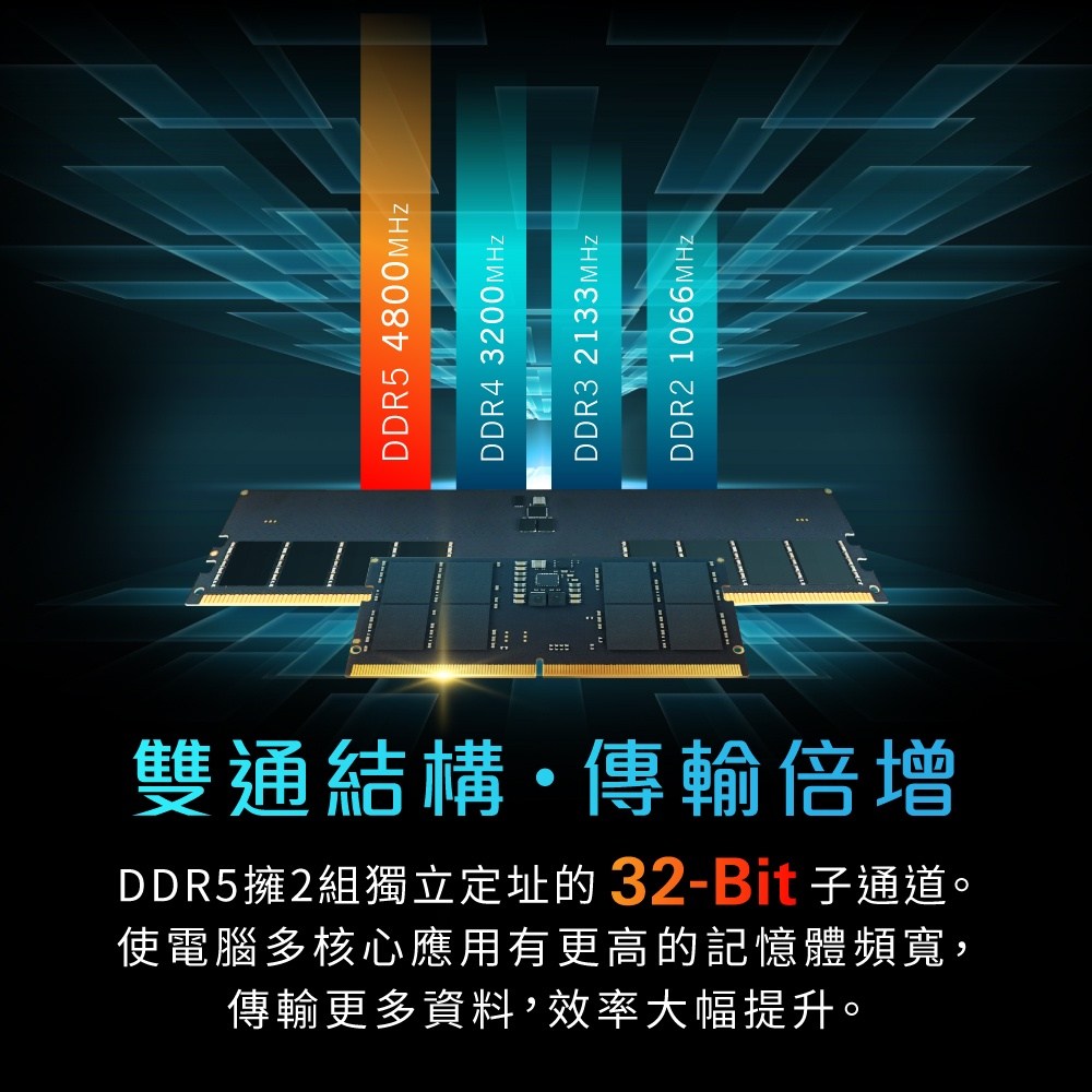 - 升級您的筆記型電腦,享受更快的DDR5 4800速度,提升整體效能體驗。