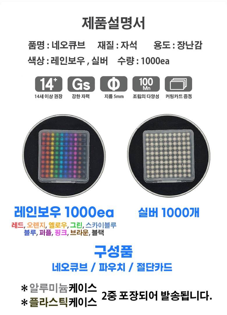 Sj Neocube磁鐵球磁5mm 1000EA, 銀色