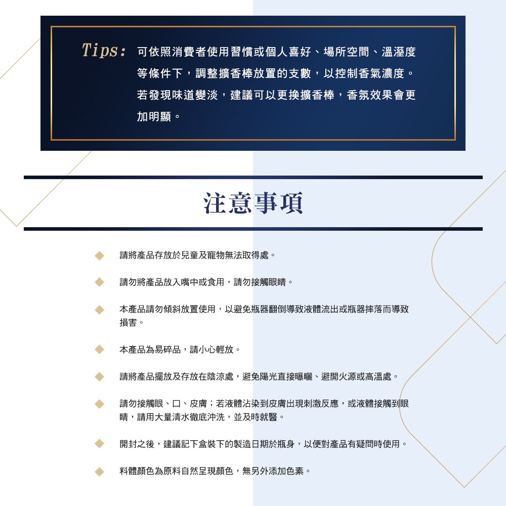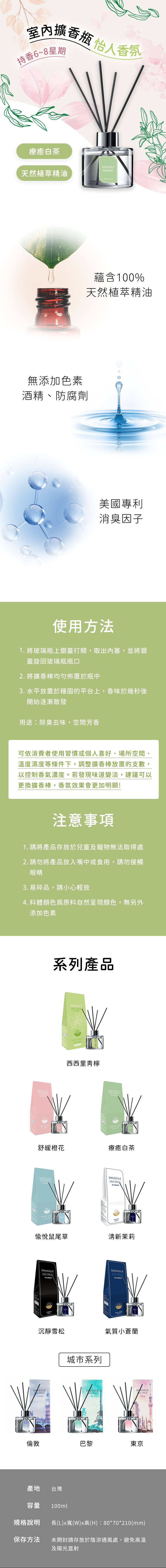 - 香氛油與擴香棒完美結合,輕鬆享受持久香氛,讓居家空間隨時充滿宜人氣息。