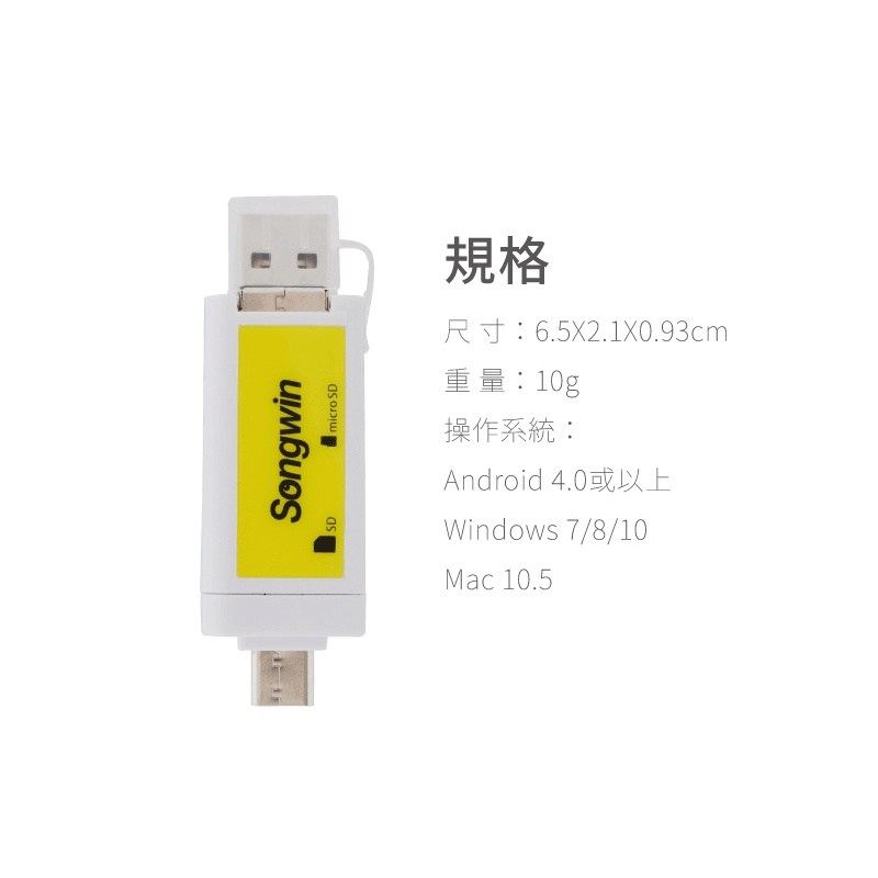 - OTG功能讓您無需額外安裝驅動程式,即插即用,快速讀取記憶卡資料,省時省力。