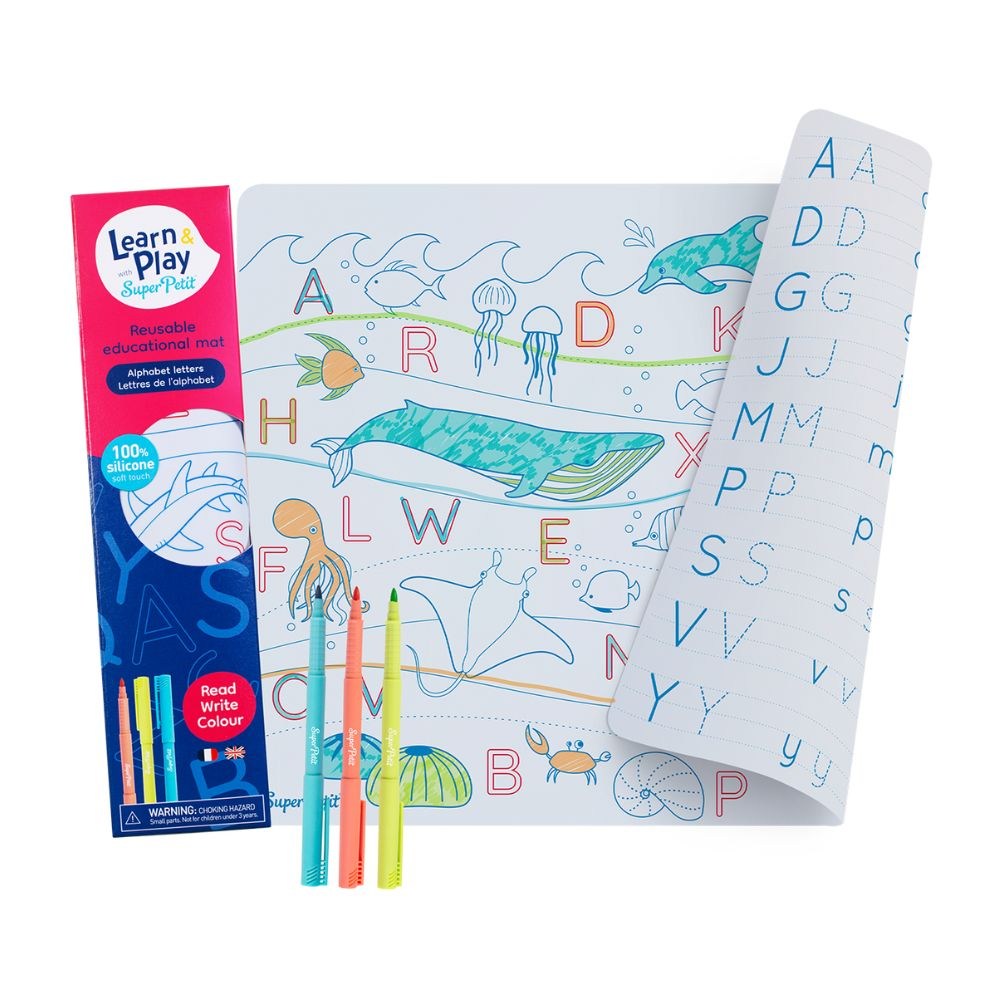 Super Petit 玩中學矽膠餐墊,讓寶寶在用餐時也能快樂學習!這款餐墊採用食品級矽膠製成,讓父母安心。海洋ABC主題設計,讓寶寶盡情揮灑創意,邊玩邊學字母和海洋生物。餐墊易於清潔,只需擦拭或沖洗即可,方便又衛生。40*30cm的尺寸,適合各種餐桌,讓寶寶隨時隨地都能享受塗鴉的樂趣。不僅是餐墊,更是啟發孩子創造力的好幫手!