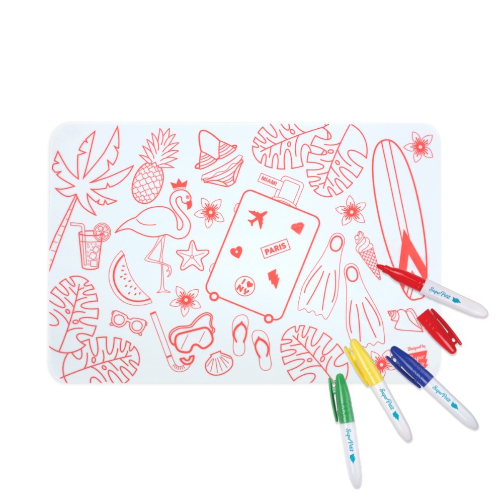 Super Petit 矽膠彩繪餐墊 MINI 佛羅里達,讓孩子在用餐或遊戲時光中盡情揮灑創意!這款可重複使用的矽膠餐墊,還能讓孩子用附贈的可水洗彩色筆盡情塗鴉,激發無限想像力。佛羅里達主題的可愛圖案,為孩子帶來歡樂的用餐氛圍。餐墊易於清潔,只需擦拭或沖洗即可,方便家長輕鬆打理。輕巧的設計方便攜帶,無論在家或外出用餐,都能讓孩子隨時隨地享受創作的樂趣,同時保持桌面清潔。