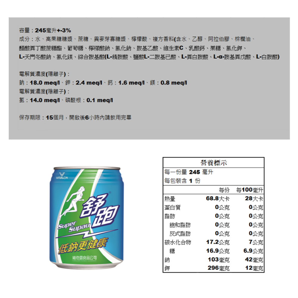 - 低鈉配方更健康,減少身體負擔,讓您在運動時無後顧之憂,盡情揮灑汗水。
