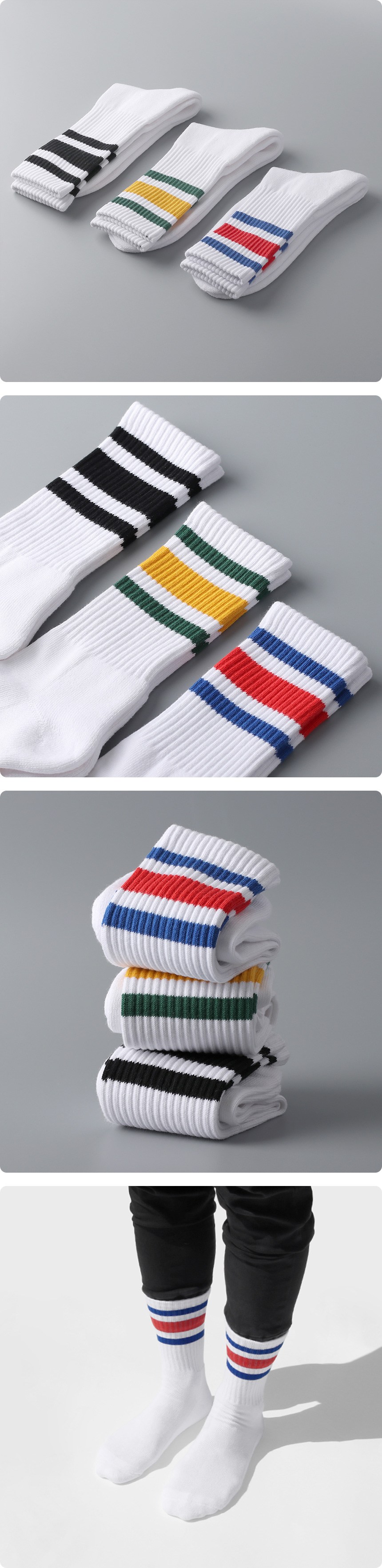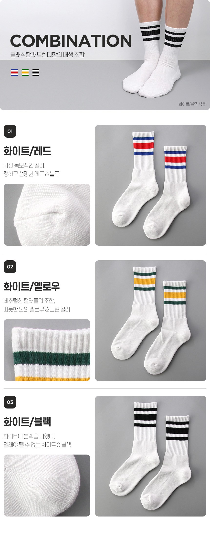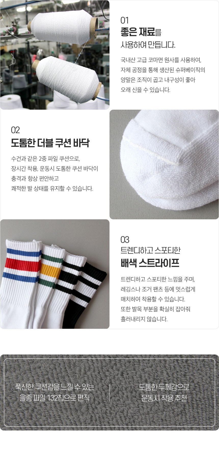 Superbasic男款線條印花長襪,採用韓國產高級精梳棉紗,觸感柔軟舒適,耐穿不易鬆弛。襪底採用厚實的雙層毛圈緩衝設計,能有效吸收衝擊,長時間穿著或運動時也能保持足部舒適。時尚的撞色條紋設計,可與緊身褲或束口褲等搭配,展現運動時尚感。襪子能確實包覆腳踝,不易滑落,給您帶來全天候的舒適體驗。此款襪子從設計到生產的所有工序,皆使用100%國內原紗在韓國進行。