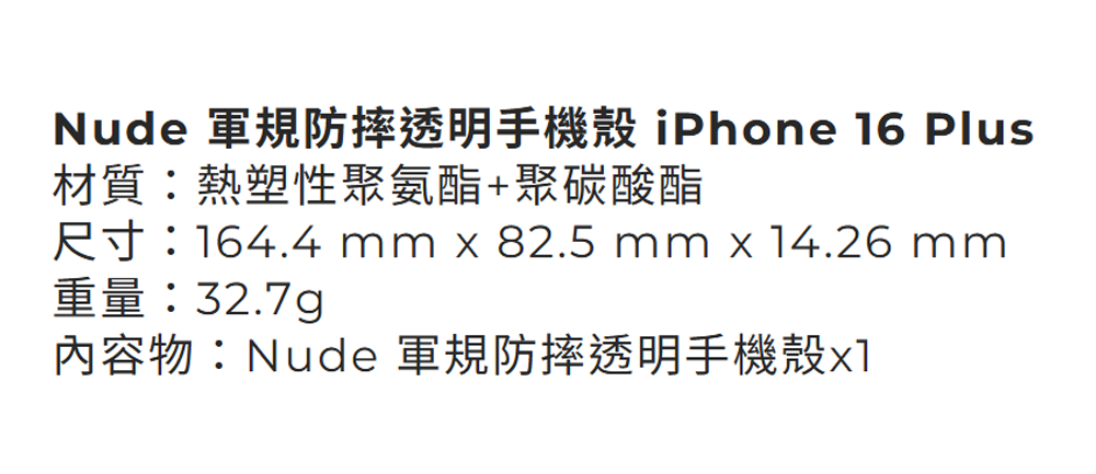 - 透明材質展現原機之美,清晰透亮,完美呈現iPhone 16 Plus的色彩。