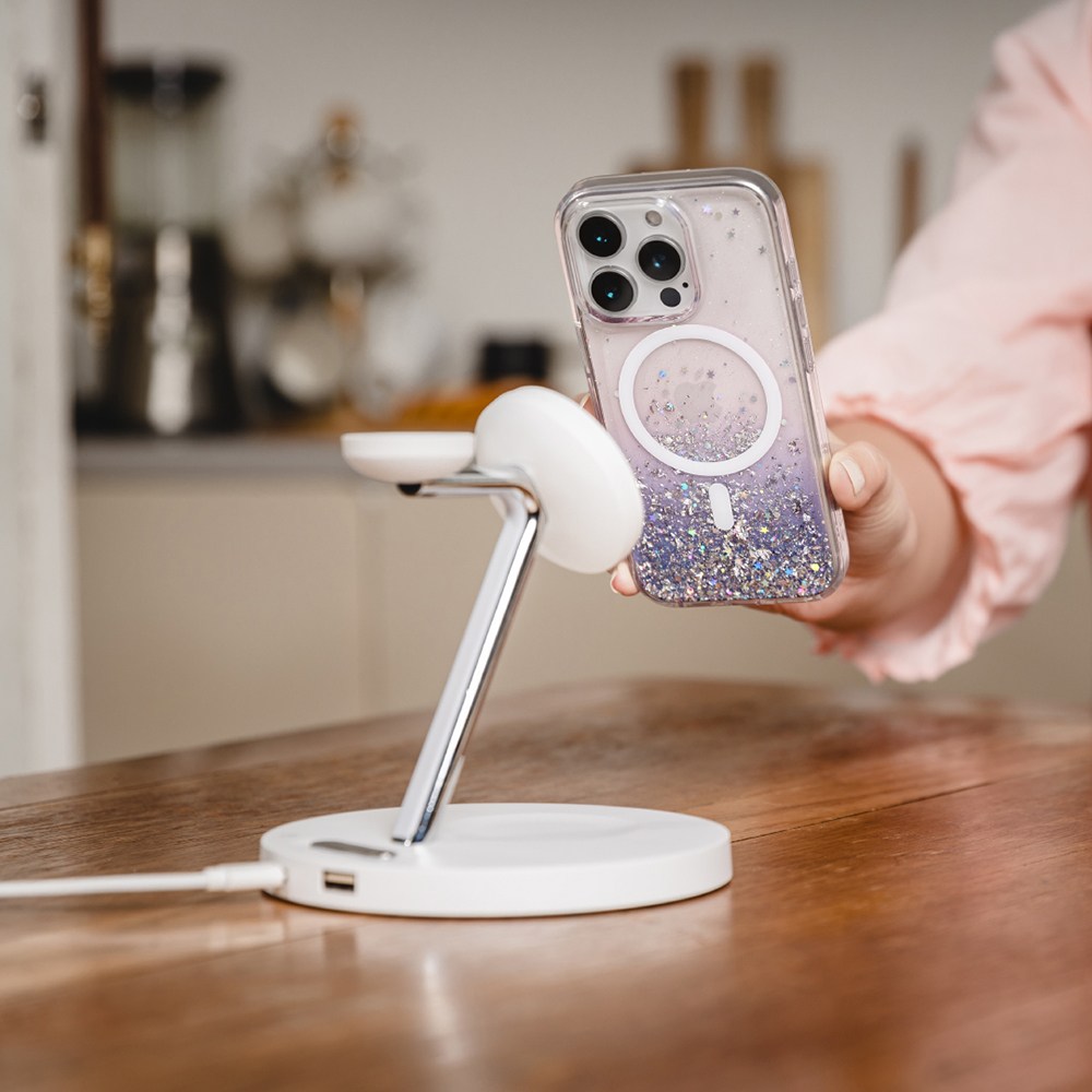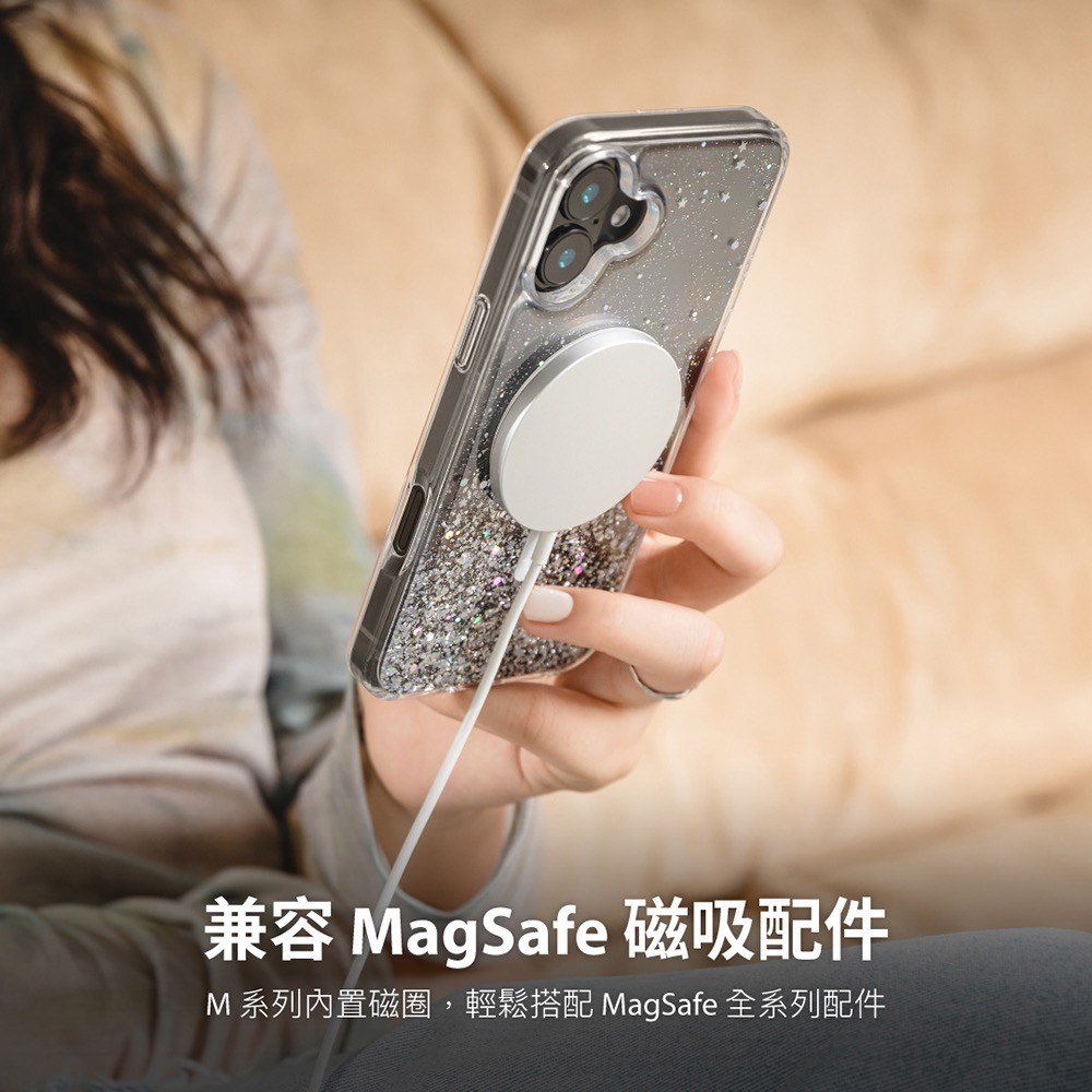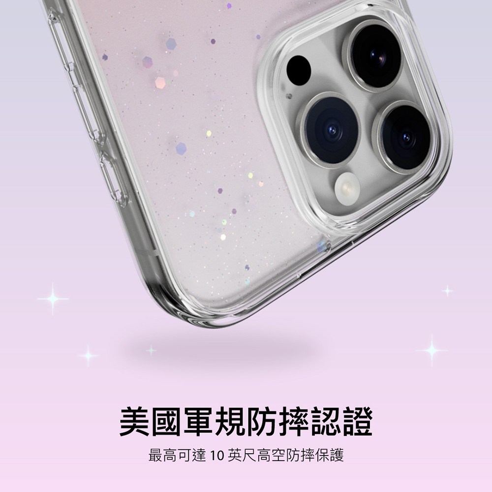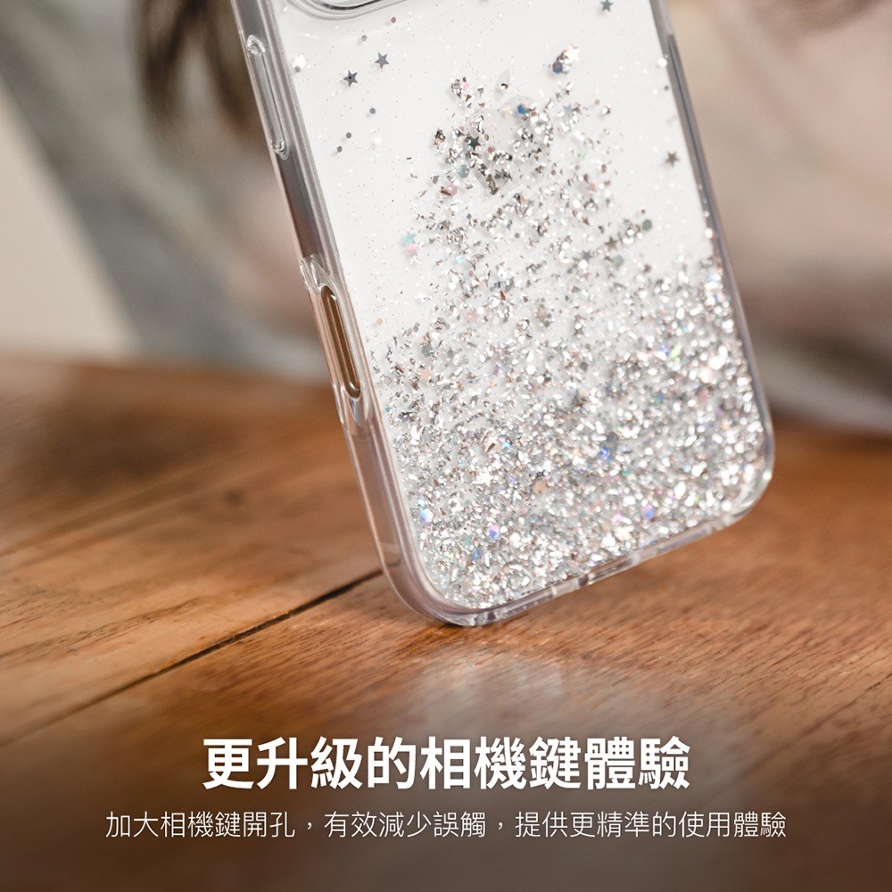 SwitchEasy魚骨牌Starfield星砂手機保護殼,專為iPhone 16 Plus設計,透明色外觀時尚簡約。獨特的星砂設計,讓手機更具個性。內置磁圈,完美兼容MagSafe配件,充電更方便。採用0.3mm AIR-BARRIER空氣屏障技術,有效吸收摔落衝擊,防止水波紋產生,並通過美國軍規防摔認證,提供最高可達10英尺的防摔保護。加大相機鍵開孔設計,減少誤觸,提供更精準的使用體驗。
