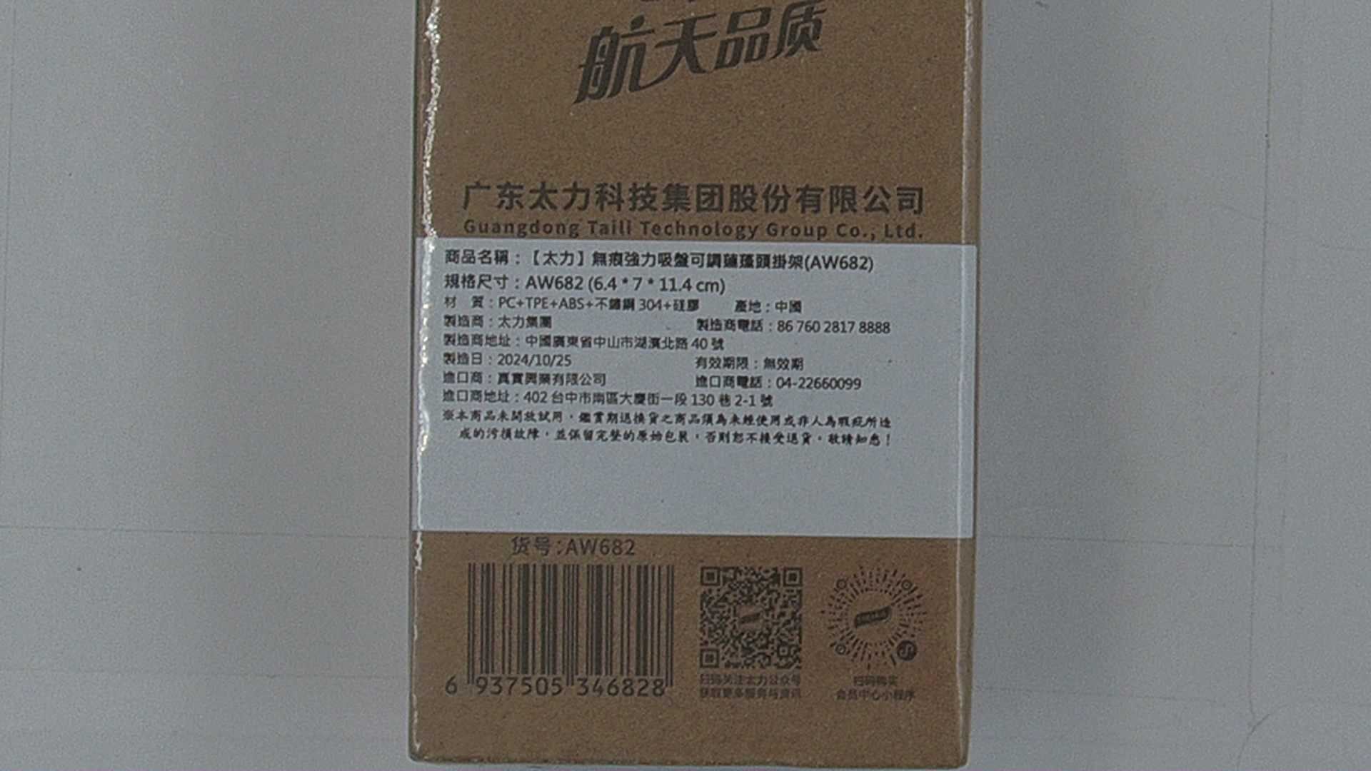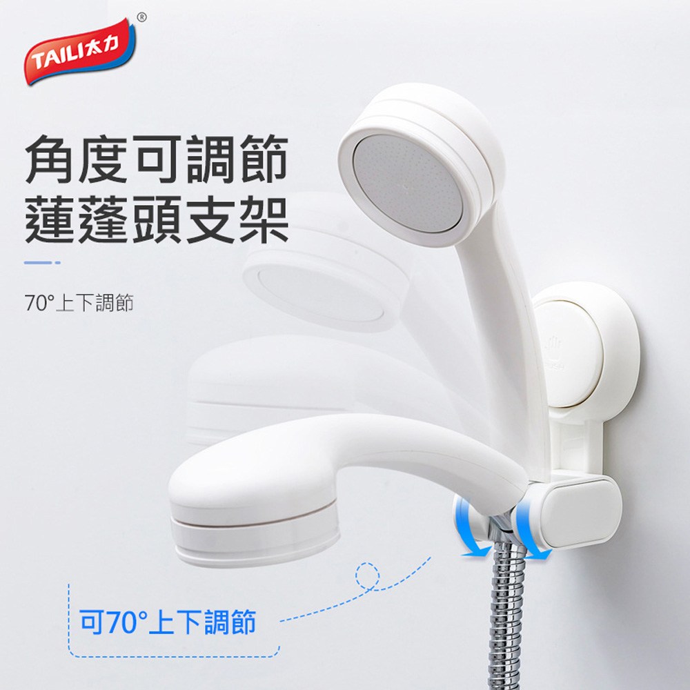 太力無痕強力吸盤可調蓮蓬頭掛架,AW682,為您的浴室提供便捷且多功能的解決方案。這款掛架採用無痕吸盤設計,無需鑽孔即可輕鬆安裝在光滑表面上,避免損壞牆面。尺寸為7 x 6.4 x 11.4公分,小巧不佔空間,卻能穩固支撐蓮蓬頭。可調節設計讓您隨意調整蓮蓬頭的角度,享受舒適的淋浴體驗。採用PC+TPE+ABS+不鏽鋼304材質,堅固耐用,不易生鏽,確保長期使用。
