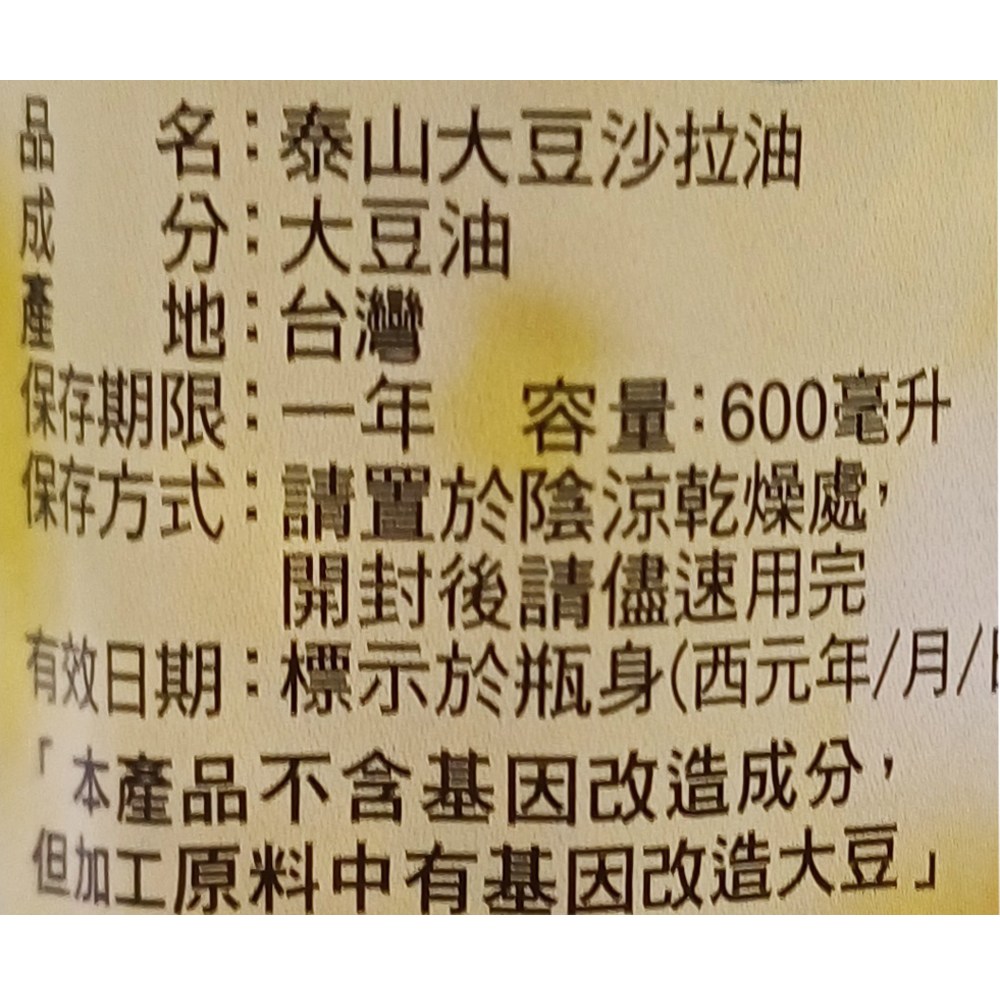 - 泰山大豆沙拉油,清澈透亮,讓您輕鬆享受烹飪的樂趣。